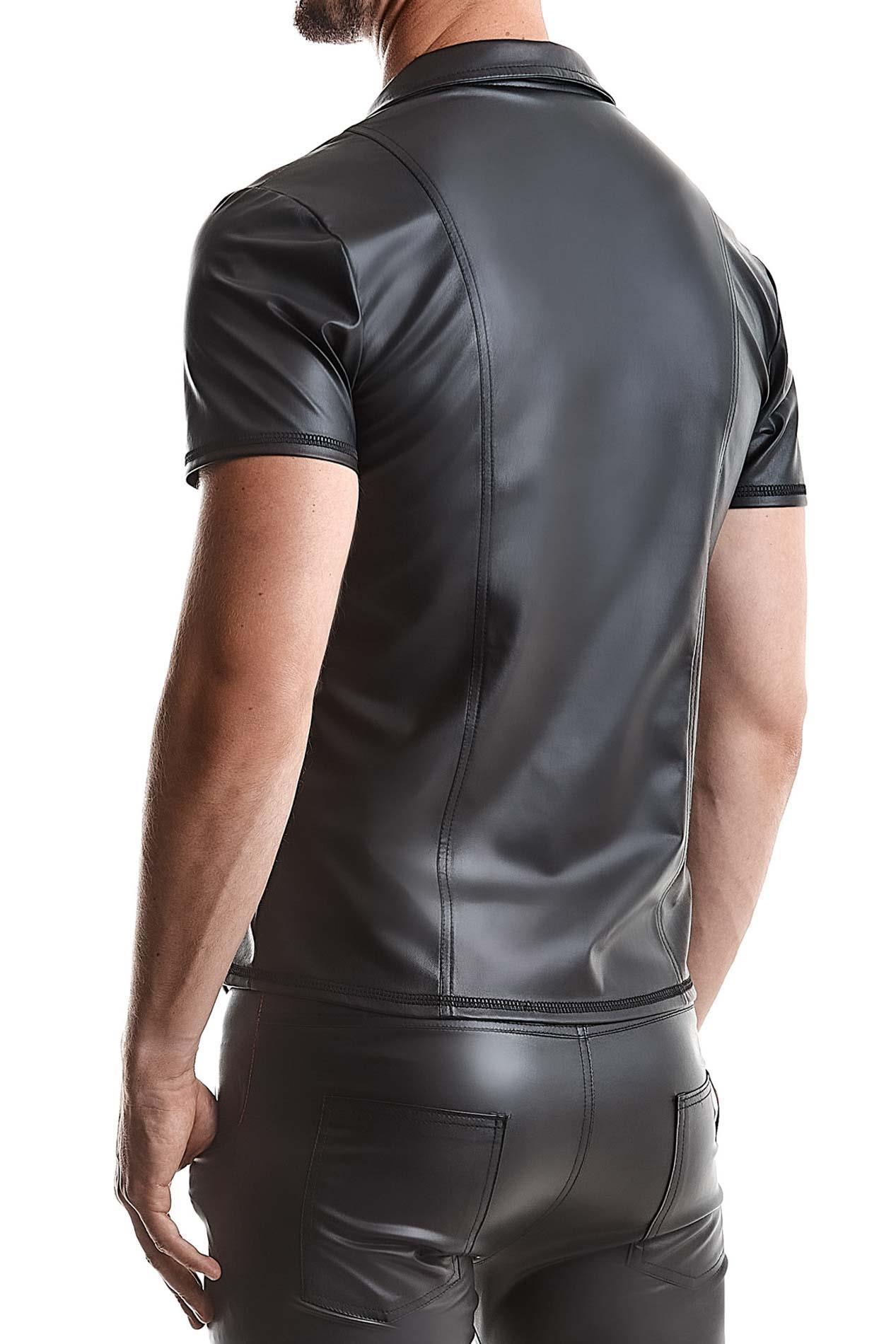 Polo REGNES FETISH PLANET — wetlook, czarne, elastyczne (4XL) to elegancka koszulka polo wykonana z wysokiej jakości materiału o składzie 95% poliester / 5% elastan. Materiał o wykończeniu wetlook zapewnia błyszczący, nowoczesny wygląd oraz dobrą odporność na rozciąganie, dzięki czemu koszulka idealnie dopasowuje się do sylwetki, zachowując komfort noszenia. Model dostępny w rozmiarze 4XL został zaprojektowany z myślą o pewnym i wyrazistym kroju, który podkreśla linię klatki piersiowej i talii.