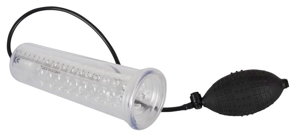 Urządzenie ma długość całkowitą 25 cm oraz głębokość wsunięcia 20 cm, co pozwala na komfortowe użycie dla większości użytkowników. Średnica mankietu wynosi 4,5 cm (rozciągliwy), co umożliwia szczelne dopasowanie przy jednoczesnym zachowaniu elastyczności. Wbudowany zawór spustowy i ergonomiczna pompka zapewniają precyzyjną kontrolę podciśnienia, a przezroczysty cylinder z miarką ułatwia monitorowanie postępów treningu.