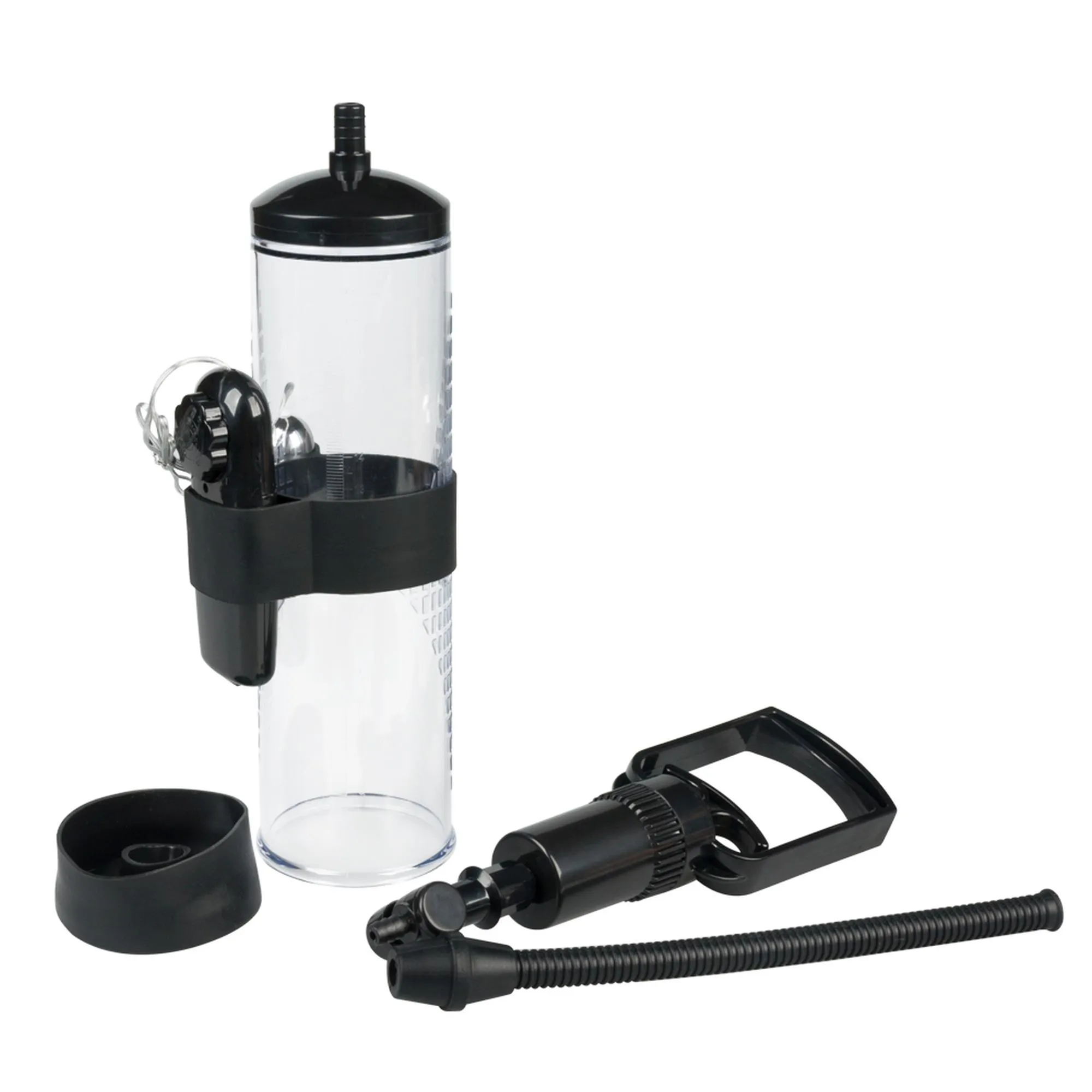 Produkt wykonany jest z wysokiej jakości materiałów, w tym silikonu i ABS, co zapewnia zarówno trwałość, jak i bezpieczeństwo podczas użycia. Wymiary zewnętrzne urządzenia wynoszą 6,9 cm, a całkowita długość pompki to 22 cm. Dzięki wydajnej pompie proces usuwania powietrza z cylindra jest szybki i bezproblemowy, co wpływa na efektywność całego działania urządzenia.