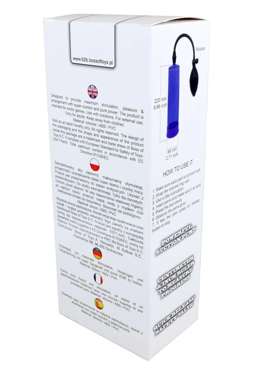 Pompa próżniowa Pompka-Powerpump to innowacyjne urządzenie stworzone z myślą o mężczyznach pragnących wzbogacić swoje życie intymne. Dzięki zastosowaniu wysokiej jakości silikonu i ABS, produkt ten zapewnia nie tylko bezpieczeństwo, ale również komfort podczas użytkowania. Jego wodoodporny design sprawia, że możesz go używać w różnych warunkach, a jego długość 22 cm idealnie sprawdza się w każdym przypadku.