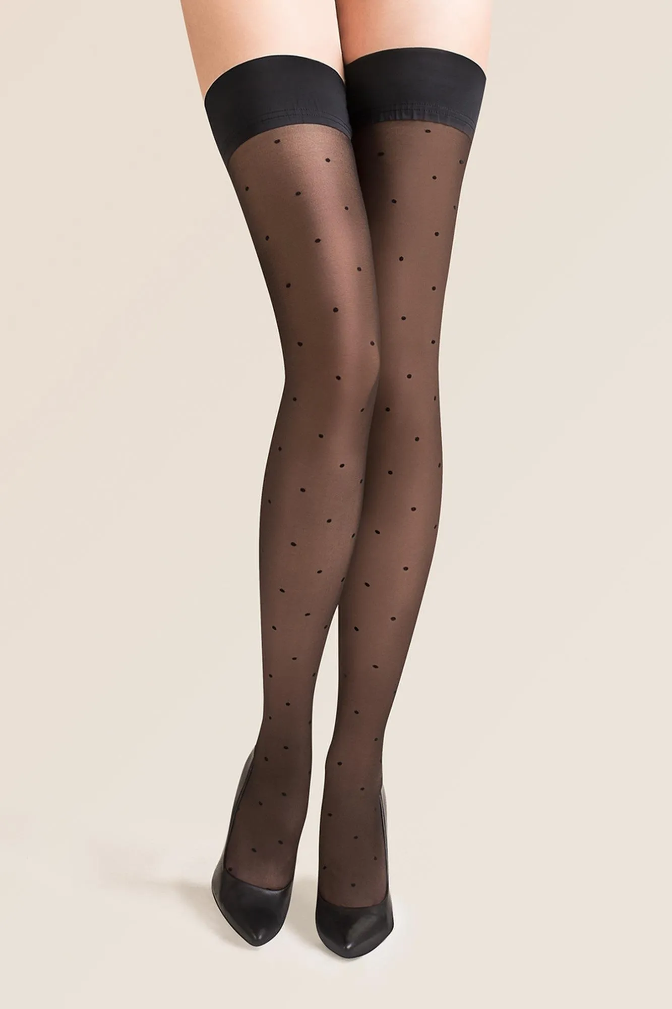 Pończochy cienkie Calze Puntina to doskonały wybór dla kobiet, które cenią sobie styl oraz wygodę. Te eleganckie, wzorzyste pończochy w kolorze czarnym, dostępne w rozmiarze M/L, to idealne dopełnienie każdej stylizacji. Wykonane z wysokiej jakości materiałów, są nie tylko piękne, ale także praktyczne. Dzięki dodatkom włókna LYCRA, pończochy doskonale dopasowują się do ciała, zapewniając komfort noszenia przez cały dzień.