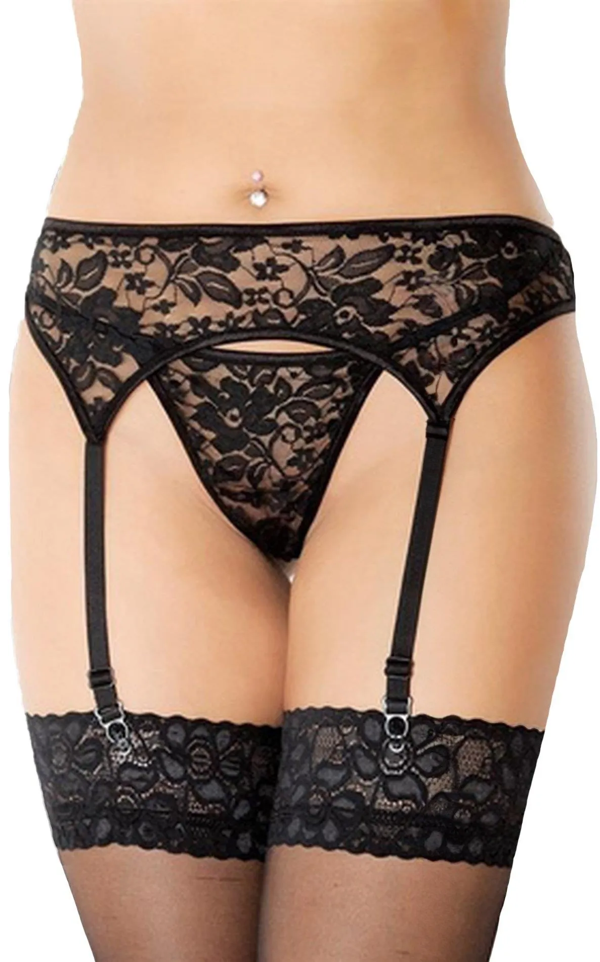 Pas do pończoch Garterbelt 3319 z koronkowymi stringami, czarny S/M