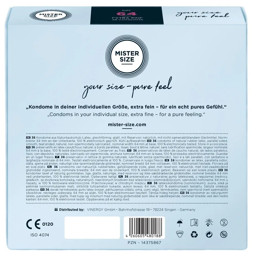 Prezerwatywy Mister Size 64 mm to idealne rozwiązanie dla osób poszukujących komfortu oraz maksymalnej przyjemności. Wykonane z lateksu kauczuku naturalnego, są nie tylko cienkie i przejrzyste, ale także wegańskie, co czyni je odpowiednimi dla osób dbających o swoje zdrowie oraz środowisko. Każda paczka zawiera 36 sztuk prezerwatyw, co zapewnia długotrwałe użytkowanie i wygodę.