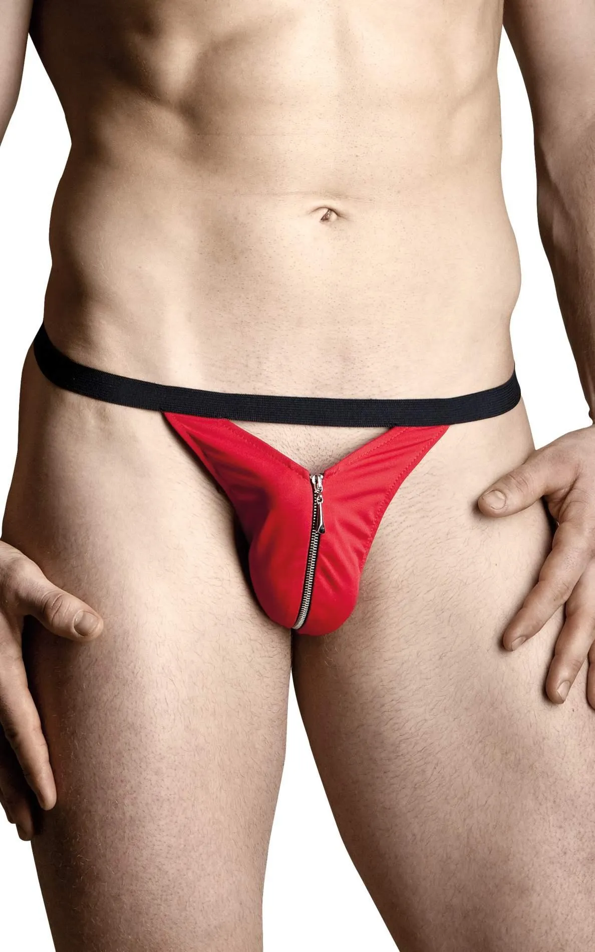 Stringi męskie SOFTLINE COLLECTION - Satynowe z zamkiem, Czerwone, S/L