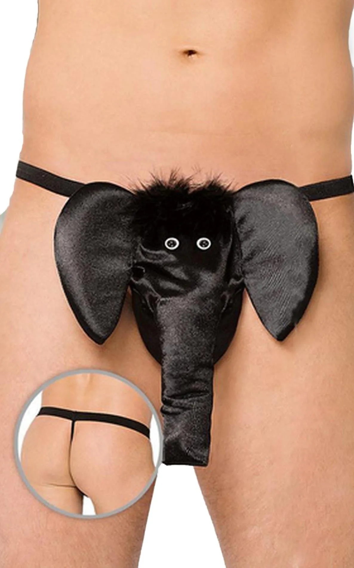Stringi SOFTLINE COLLECTION z motywem słonia, czarne, S/L, elastyczny poliamid