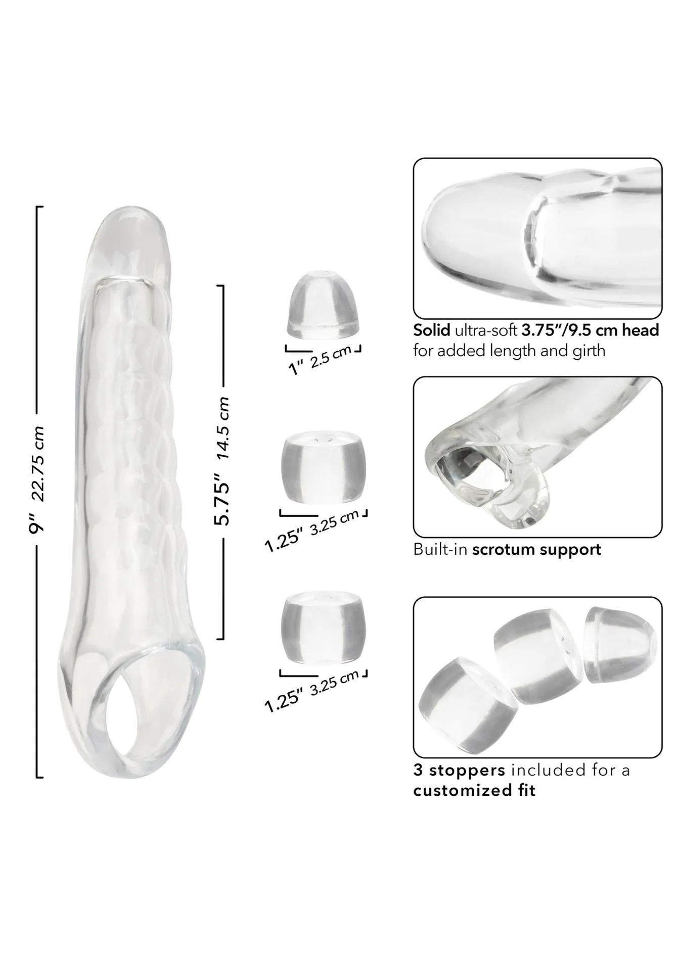 Zestaw Performance Maxx Clear Extension Kit to innowacyjne rozwiązanie dla par, które pragną wzbogacić swoje intymne doświadczenia. Obiekt ten podkreśla zarówno długość, jak i obwód, dostarczając głęboko satysfakcjonujących doznań. Dzięki ultra-miękkiej główce o średnicy 3,75" / 9,5 cm, każdy moment staje się niezapomnianym przeżyciem, które intensyfikuje bliskość między partnerami.