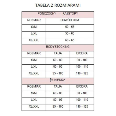Rekomendujemy kierowanie się tabelą wzrostu i wagi producenta. Dzięki technologii Multi-Stretch, rajstopy mają dużą tolerancję, jednak odpowiednio dobrany rozmiar zapewnia stabilność szerokiego, nieuciskającego mankietu w talii.