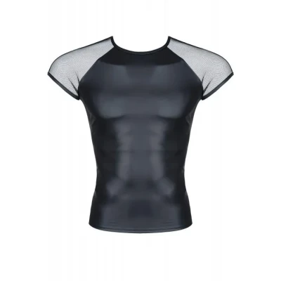 Nowoczesny męski t-shirt XXL z ekoskóry i elastycznej siateczki, komfortowy i stylowy