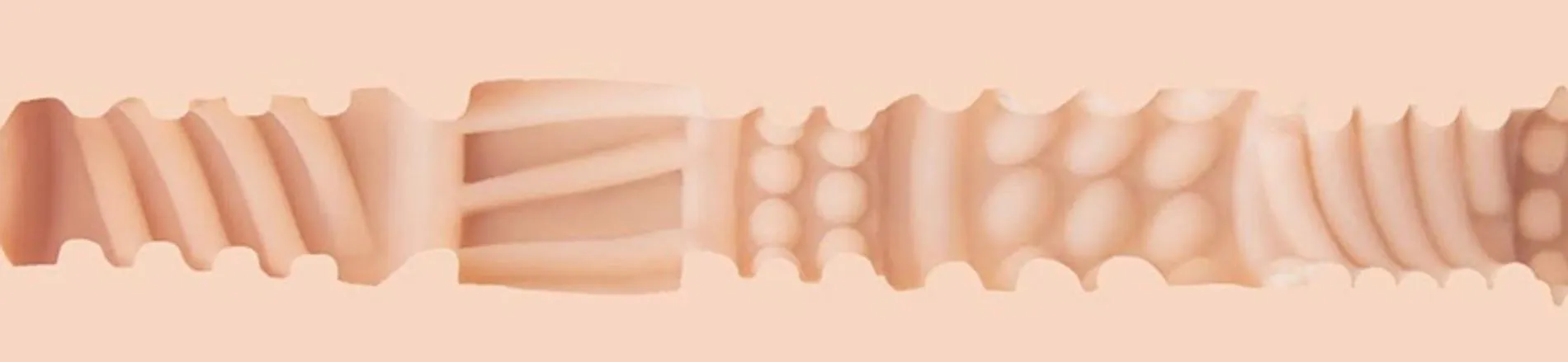 Wnętrze produktu jest zaprojektowane w sposób, który maksymalizuje stymulację. Wyposażone w wypustki oraz żebrowane komory, oferuje szereg faktur, które potęgują doznania podczas użycia. Duże wypustki w końcowej części kanału zostały zaprojektowane, aby intensyfikować przyjemność, stymulując najbardziej wrażliwe obszary. Wykonany z wysokiej jakości materiału SuperSkin, rękaw jest zarówno miękki, jak i elastyczny, co sprawia, że jego użycie przypomina kontakt ze prawdziwą skórą.