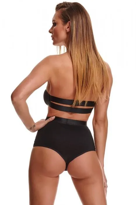 Biustonosz wyróżnia się miękką miseczką z przodu oraz dwoma paskami z tyłu, które zapewniają odpowiednie wsparcie oraz komfort noszenia. Dodatkowo, wysokiej jakości gumka w czarnym kolorze subtelnie eksponuje plecy, podkreślając kobiecą linię. Szorty z podwyższonym stanem oferują atrakcyjny krój, który uwydatnia kształt pośladków, dodając pewności siebie każdej kobiecie.