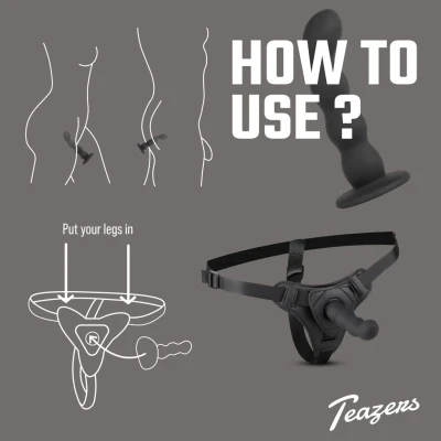 Uprząż do strap-on z silikonowym dildo Teazers – regulowana, dla par i początkujących