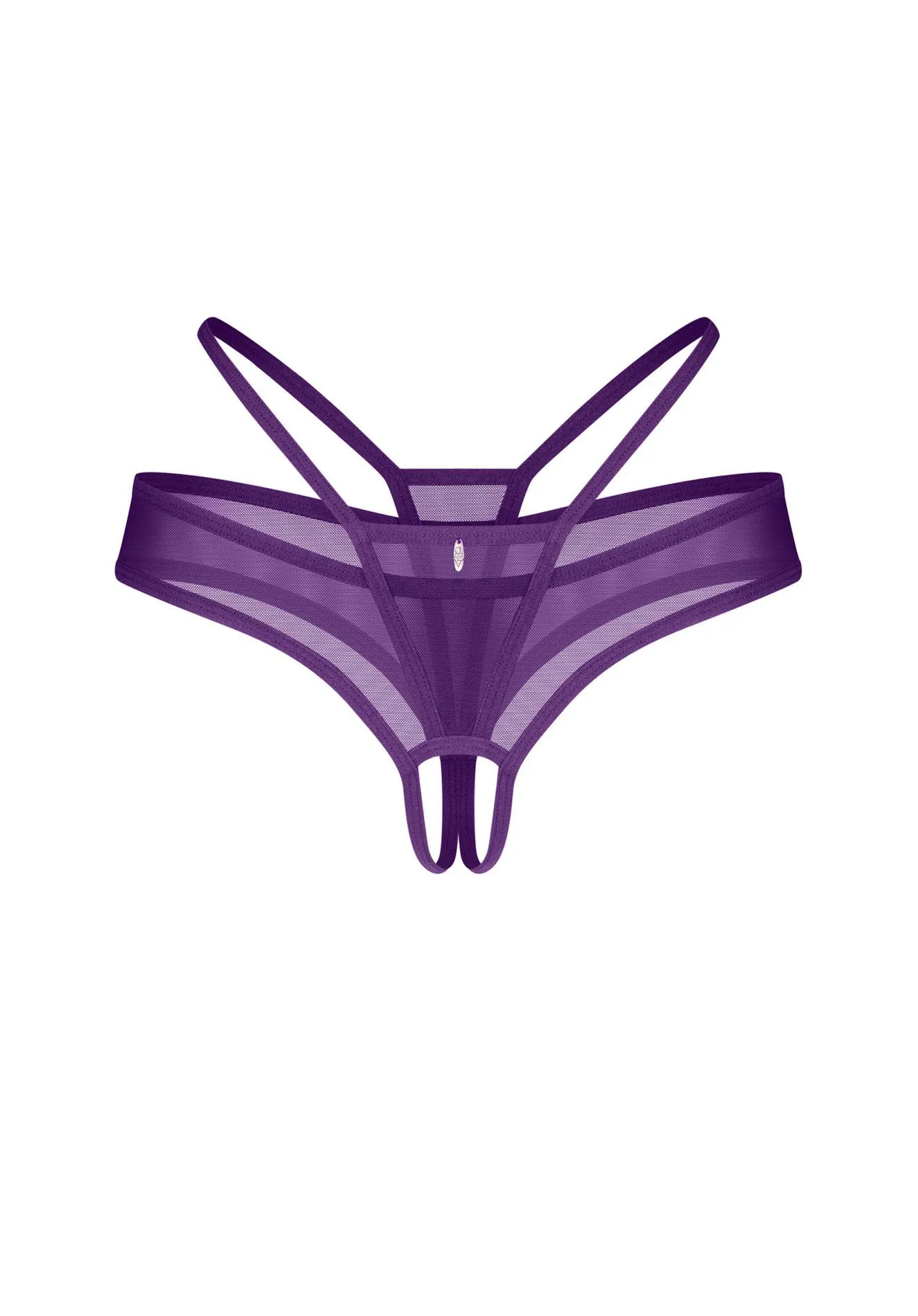 Fioletowy string bezkroczowy stworzony z myślą o osobach ceniących wygodę i elegancję. Wykonany z delikatnej, przezroczystej siateczki, ten produkt oferuje nie tylko komfort, ale również atrakcyjny wygląd. Jego intensywny, nasycony odcień fioletu przyciąga wzrok, a wielowymiarowy design z paskami subtelnie podkreśla kobiece kształty, zwracając uwagę na biodra i pośladki.