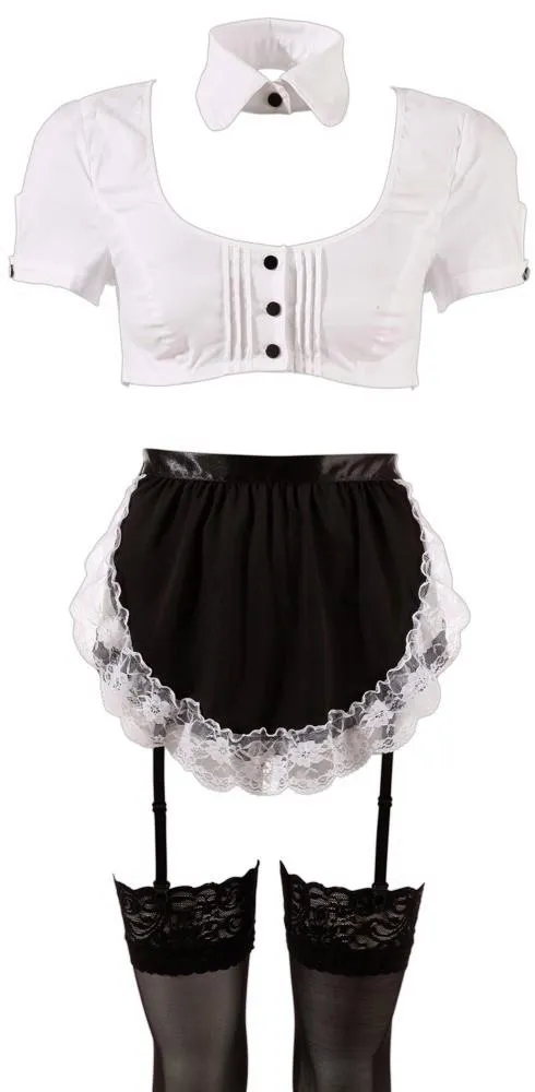 Prezentujemy strój do odgrywania ról - Seksowna służąca, idealny wybór dla tych, którzy pragną wprowadzić odrobinę ekscytacji do swojego życia intymnego. W skład kompletu wchodzi krótki top wykonany z wysokiej jakości 98% bawełny i 2% spandexu, co zapewnia maksymalny komfort i elastyczność. Do zestawu dołączone są również majtki z podwiązką ouvert, fartuszek, opaska na włosy oraz obroża-kołnierz, co sprawia, że produkt jest kompletny i gotowy do użycia.