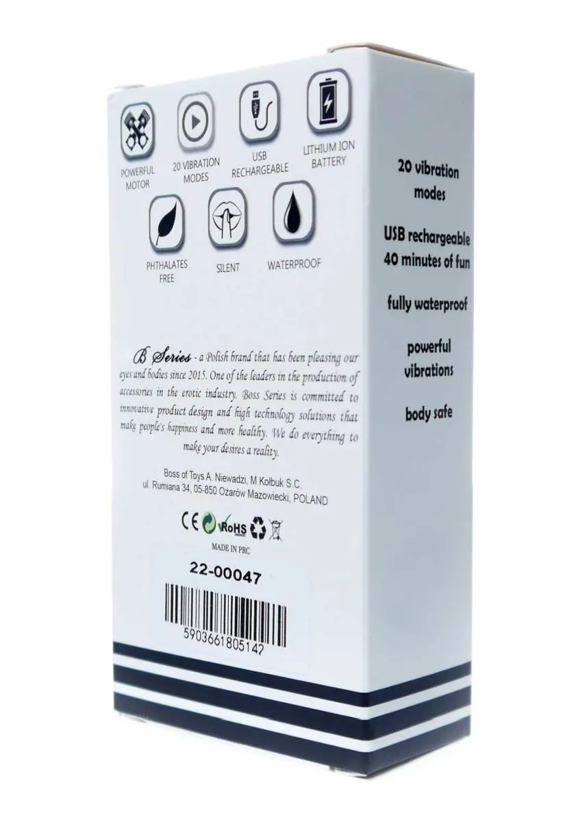 Stymulator został zaprojektowany z myślą o maksymalnej satysfakcji. Jego kompaktowy rozmiar (długość 10 cm, średnica 2,2 cm) sprawia, że jest diskretny i łatwy do przechowywania, a jednocześnie wytrzymały. Wyposażony w silny silnik oraz unikalne tryby wibracji, zapewnia doświadczenie, które zostanie w pamięci na długo. Czas pracy wynoszący 40 minut po pełnym naładowaniu (1,5 godziny) pozwala na długotrwałe korzystanie z przyjemności.