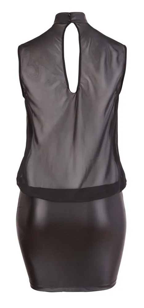 Sukienka przezroczysta, czarna to połączenie elegancji i nowoczesności, które doskonale podkreśla atuty kobiecej sylwetki. Wykonana z wysokiej jakości materiałów, składających się w 90% z poliestru i 10% z elastanu, sukienka zapewnia zarówno komfort, jak i doskonałe dopasowanie. Górna część sukienki, wykonana z przezroczystego szyfonu (100% poliester), wprowadza powiew lekkości, a luźny krój dodaje szyku, eksponując jednocześnie piękne krągłości.