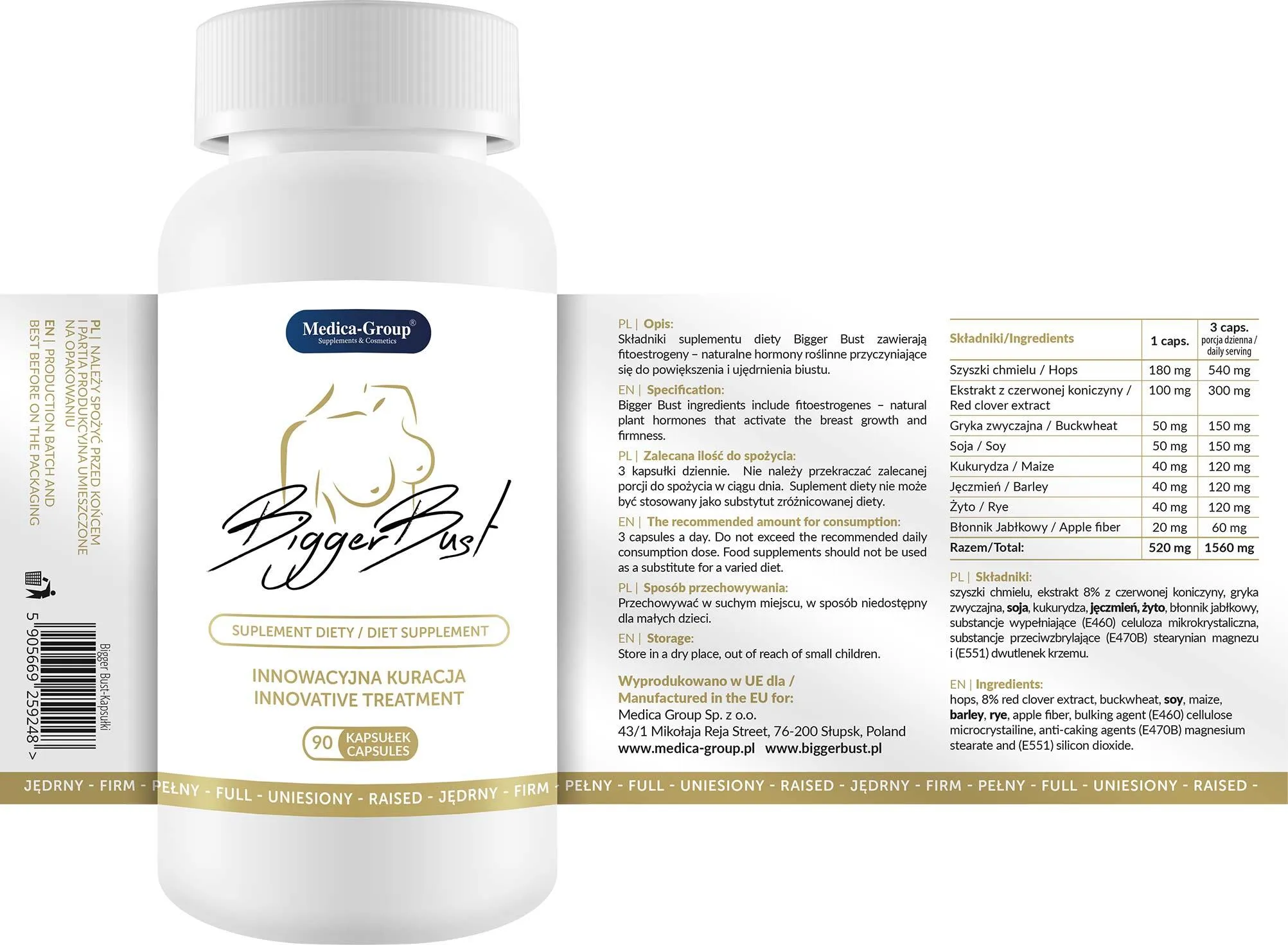Suplement diety - Bigger Bust to innowacyjne kapsułki zawierające fitoestrogeny, które mają na celu powiększenie oraz ujędrnienie biustu. Wiele kobiet marzy o pięknie wymodelowanych, dużych i jędrnych piersiach, jednakże problemy takie jak małe biusty, obwisłość czy nierówność mogą prowadzić do kompleksów oraz zahamowań. Zmiany hormonalne, ciążą, długie karmienie piersią oraz proces starzenia się mogą wpływać na wygląd biustu, jednak dzięki Bigger Bust możesz odzyskać pewność siebie i piękno swojego ciała.