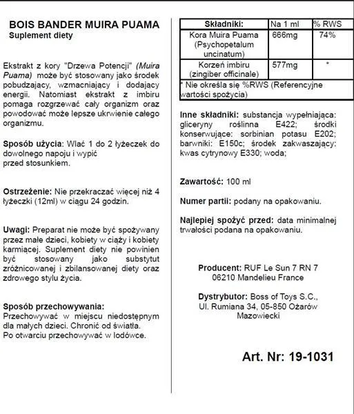 Suplement diety - Bois Bande - Ekstrakt Muira Puama to produkt stworzony z myślą o mężczyznach, którzy pragną poprawić swoje życie intymne oraz wzmocnić swoją energię seksualną. Muira Puama, znana jako ekstrakt z drzewa potencji, pochodzi z egzotycznych terenów Afryki i Antyli i od lat jest ceniona za swoje właściwości afrodyzyjne. Suplement ten ma na celu wspomaganie erekcji, co może pozytywnie wpływać na jakość życia seksualnego.