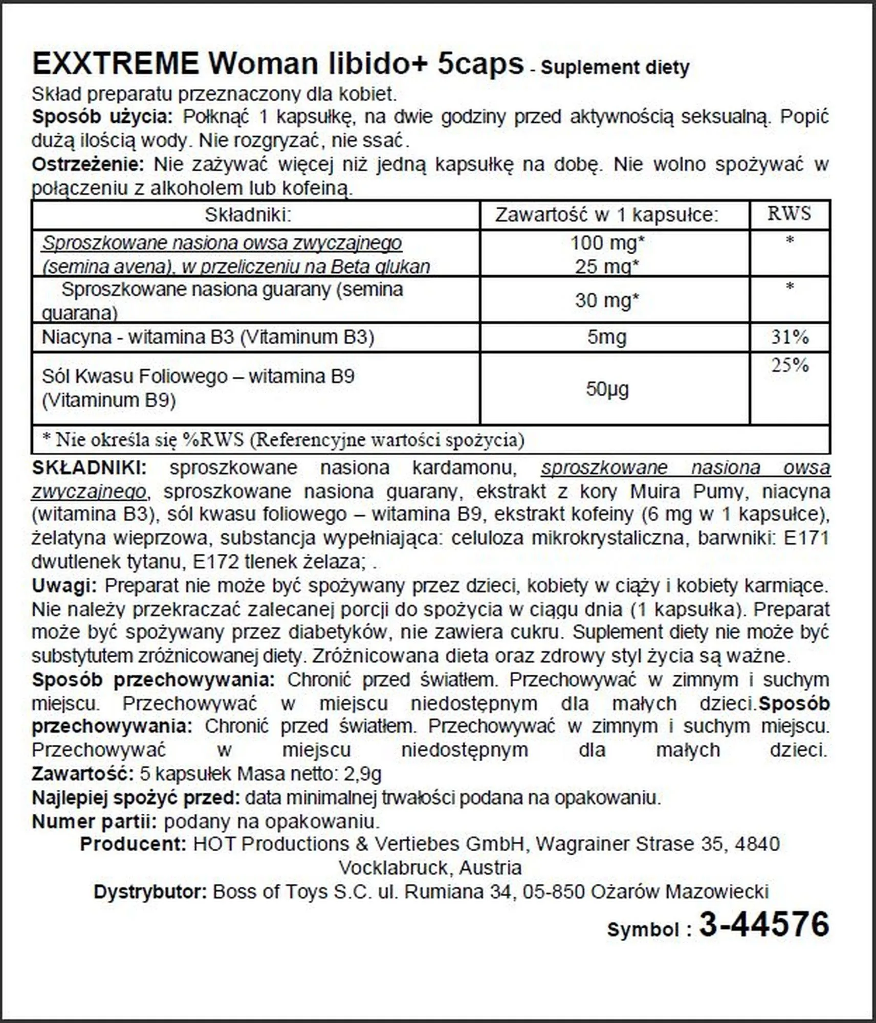 Stawiając na jakość i naturalność, eXXtreme Libido to idealny wybór dla kobiet, które pragną wzbogacić swoje życie intymne. Wybierz ten produkt, aby poczuć różnicę i odkryć na nowo przyjemności, które towarzyszą każdemu zbliżeniu. Zainwestuj w swoje zadowolenie i satysfakcję – z eXXtreme Libido osiągniesz to, o czym marzysz.
