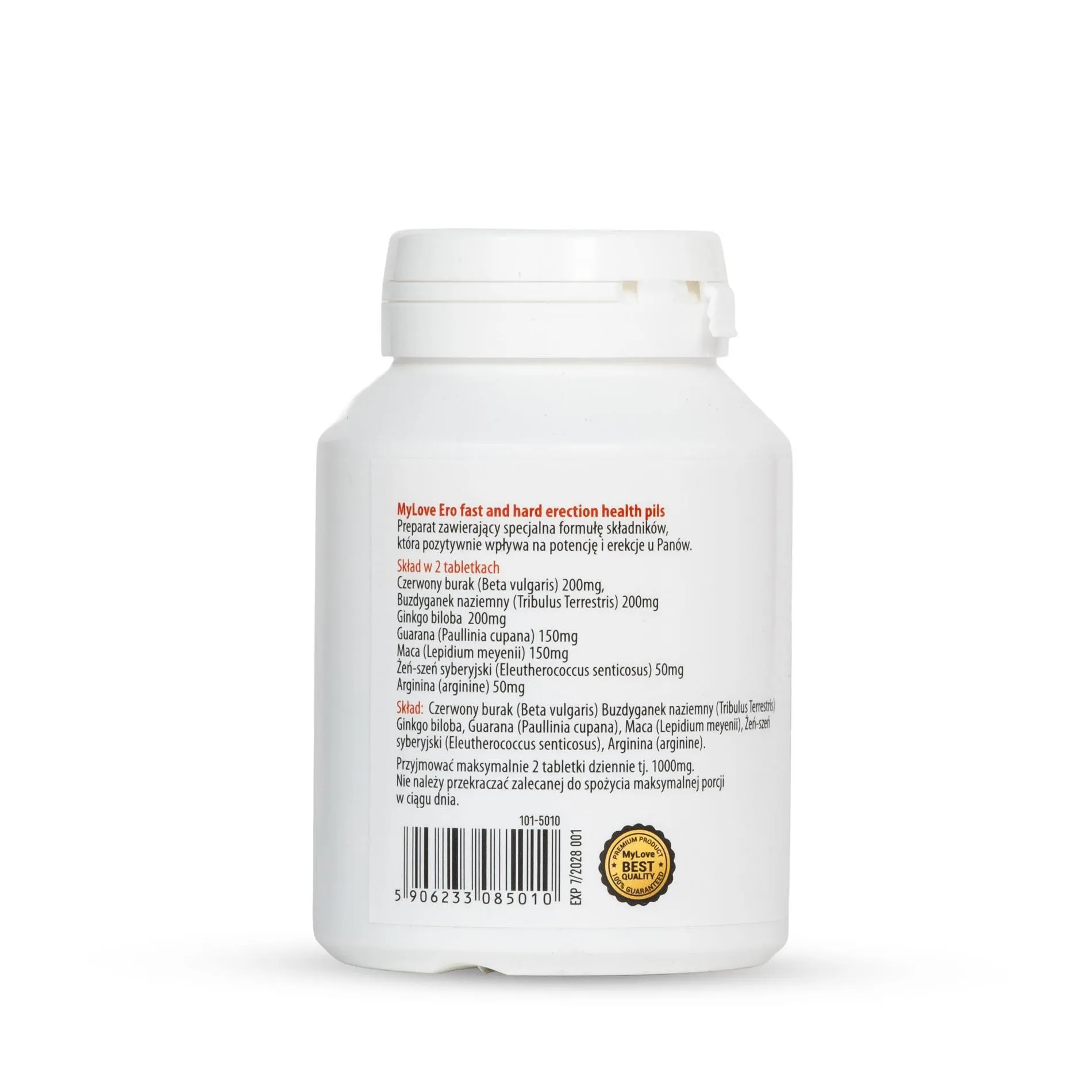 MyLove Ero — 60 kapsułek to suplement diety opracowany z myślą o mężczyznach pragnących wspierać swoją sprawność seksualną oraz ogólne samopoczucie. Każde opakowanie zawiera 60 kapsułek, co przy standardowym stosowaniu zapewnia suplementację na określony okres. Formuła produktu opiera się na starannie dobranych składnikach roślinnych i aminokwasach, które w połączeniu mogą wspierać fizjologiczne mechanizmy związane z reakcjami seksualnymi i krążeniem.