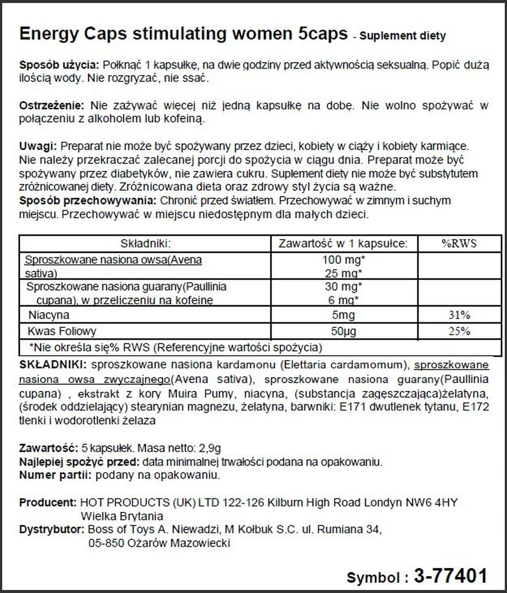 Przyjmując 5 kapsułek dziennie, wspierasz swoje ciało w dążeniu do lepszego samopoczucia oraz odkrywasz na nowo radość płynącą z relacji z partnerem. Kobieca energia to doskonały wybór dla każdej kobiety, która pragnie cieszyć się w pełni życiem erotycznym i intensywnymi chwilami bliskości. Zainwestuj w siebie i doświadcz przyjemności, której pragniesz.