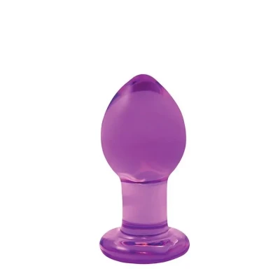 Plug analny ze szkła w kolorze średniego fioletu, 8,9 cm, elegancki i bezpieczny.