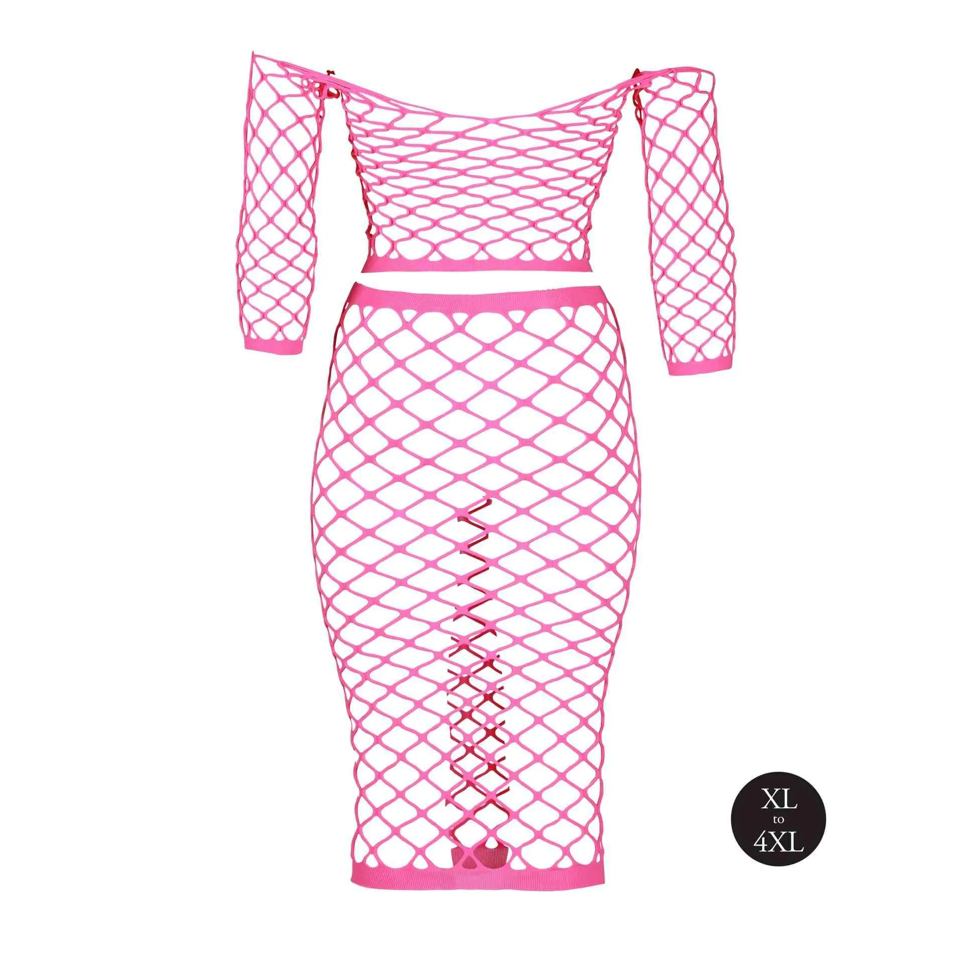 Ten wyjątkowy zestaw składa się z krótkiego topu z długimi rękawami oraz długiej spódnicy, które razem tworzą efektowny look na każdą okazję. Idealne zarówno na imprezy, jak i jako bielizna na letnie wieczory. Kolory neonowego różu i neonowej zieleni sprawiają, że wyróżnisz się w tłumie, a materiały aktywowane promieniowaniem UV dodają całości odrobinę tajemniczości oraz uroku. Dzięki nim, w nocy staniesz się prawdziwą gwiazdą.