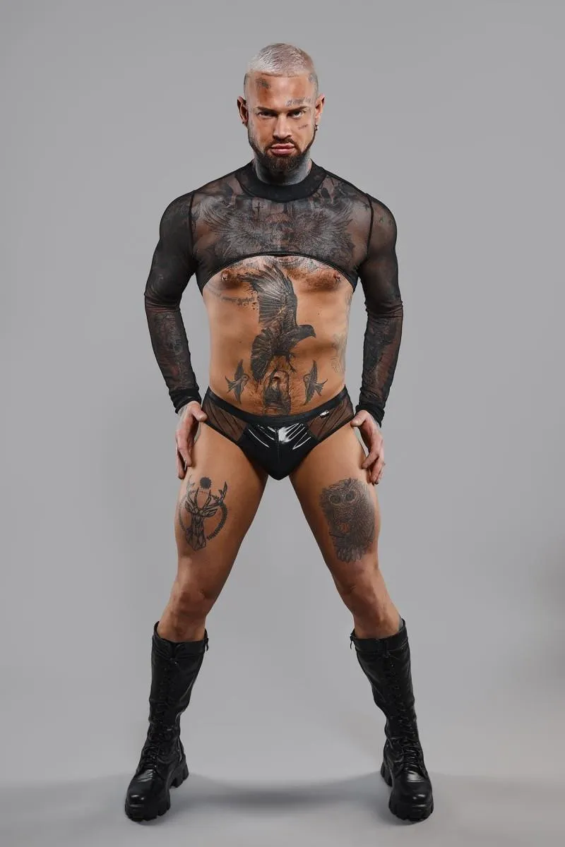 Odkryj zmysłowość i elegancję z topem z długimi rękawami Regnes Fetish Planet, wykonanym z wysokiej jakości czarnego tiulu. Ten stylowy element odzieży nie tylko dobrze się prezentuje, ale również skutecznie podkreśla sylwetkę, dzięki zastosowanemu elastycznemu materiałowi, który z łatwością dopasowuje się do ciała. Efektowne wycięcia na plecach i brzuchu dodają całości niepowtarzalnego charakteru, zapewniając jednocześnie komfort noszenia.