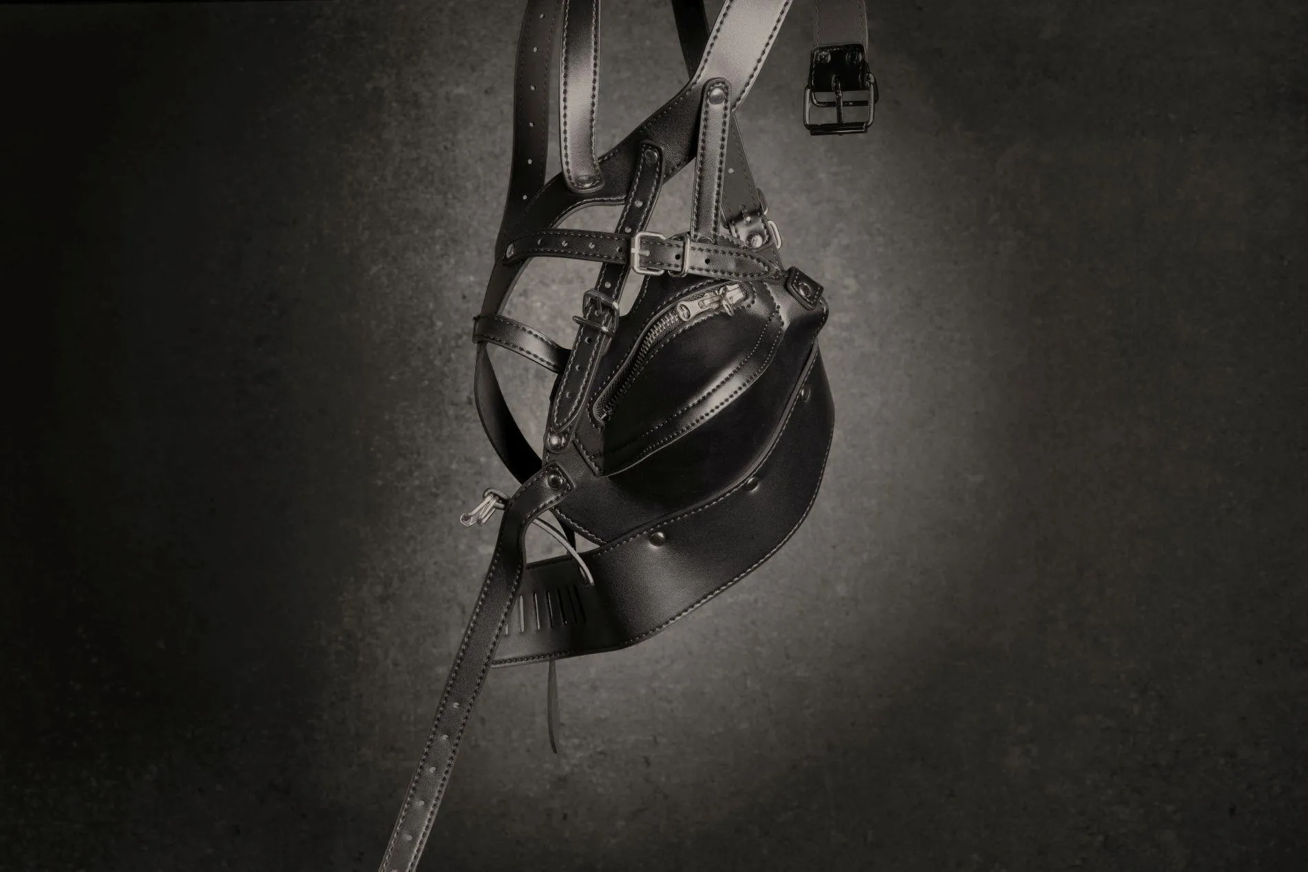 Odkryj wyjątkową skórzaną uprząż na głowę BDSM, zaprojektowaną z myślą o miłośnikach intensywnych oraz ekscytujących doświadczeń w świecie BDSM. Ta regulowana uprząż wyposażona jest w zamek błyskawiczny, który zapewnia maksimum kontroli i komfortu. Wykonana z wysokiej jakości skóry PU oraz metalowych klamer, gwarantuje idealne dopasowanie oraz trwałość, z której będziesz zadowolony przez długi czas.