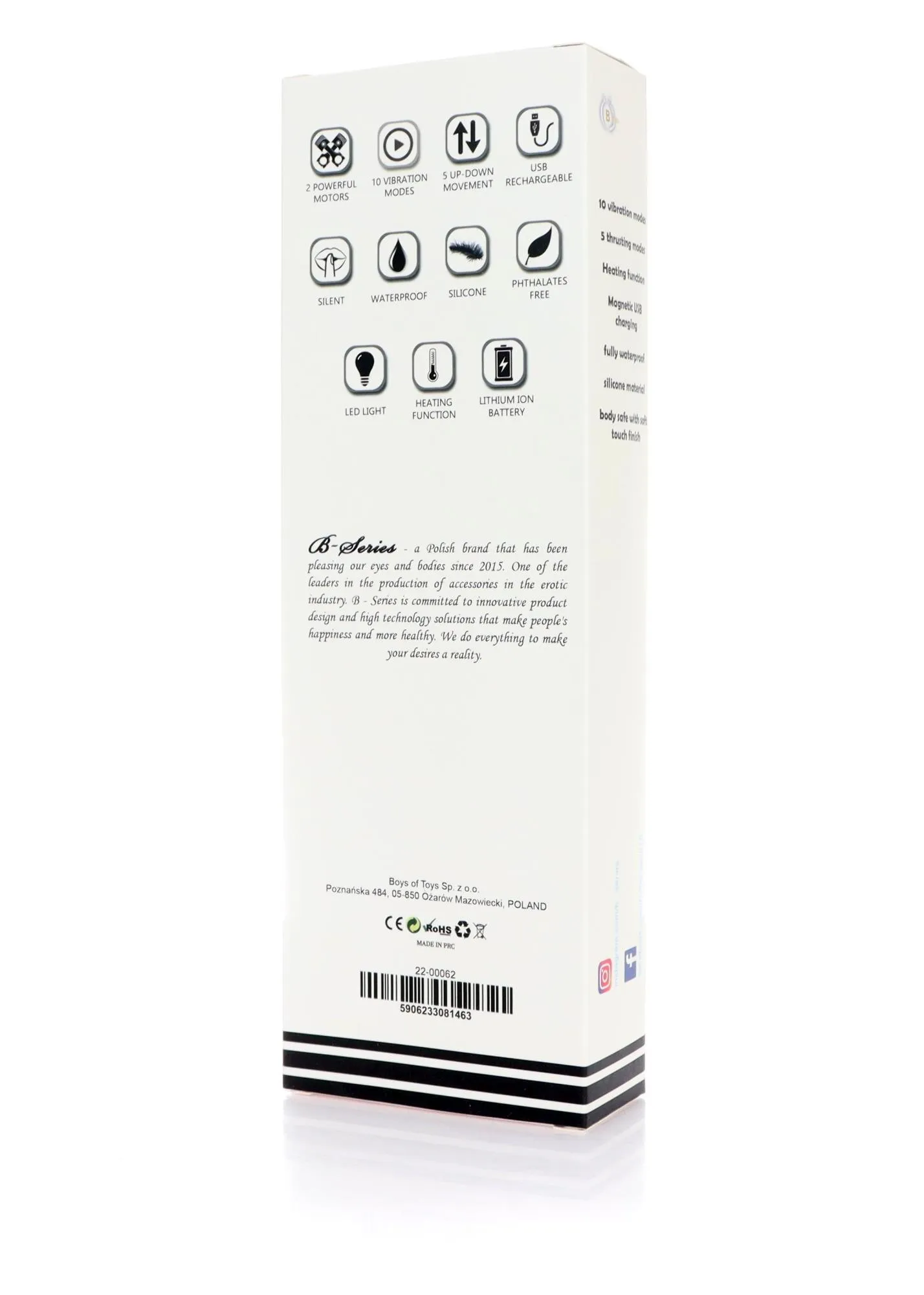 Wibrator ten wyróżnia się 5 funkcjami ruchu góra-dół oraz 10 różnymi trybami wibracji, pulsacji i eskalacji, co pozwala na pełne dostosowanie intensywności stymulacji do Twoich indywidualnych pragnień. Dodatkowo wyposażony w funkcję grzania, gwarantującą przyjemne, ciepłe odczucia, ten produkt wzbogaca Twoje doświadczenia, zapewniając zupełnie nowe wrażenia w każdej chwili intymności.