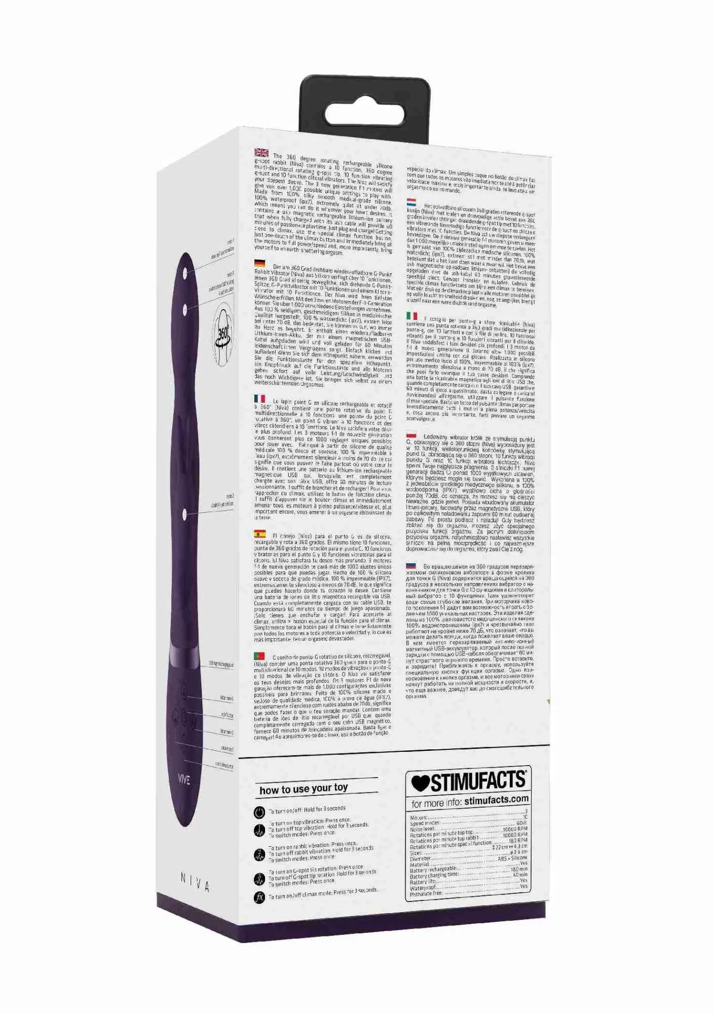 Wibrator Niva został wykonany z medycznego silikonu, co gwarantuje nie tylko bezpieczeństwo, ale także wyjątkową gładkość. Przy jego użytkowaniu możesz być pewna dyskrecji – poziom hałasu nie przekracza 60 dB. Podczas zabawy możesz skorzystać z funkcji orgazmu, która pozwala na natychmiastowe zwiększenie mocy wszystkich silniczków oraz osiągnięcie szczytowej przyjemności zaledwie jednym przyciskiem. Z ładowanym akumulatorem litowo-jonowym masz zapewnione 50 minut intensywnej zabawy po pełnym naładowaniu, które trwa zaledwie 180 minut.
