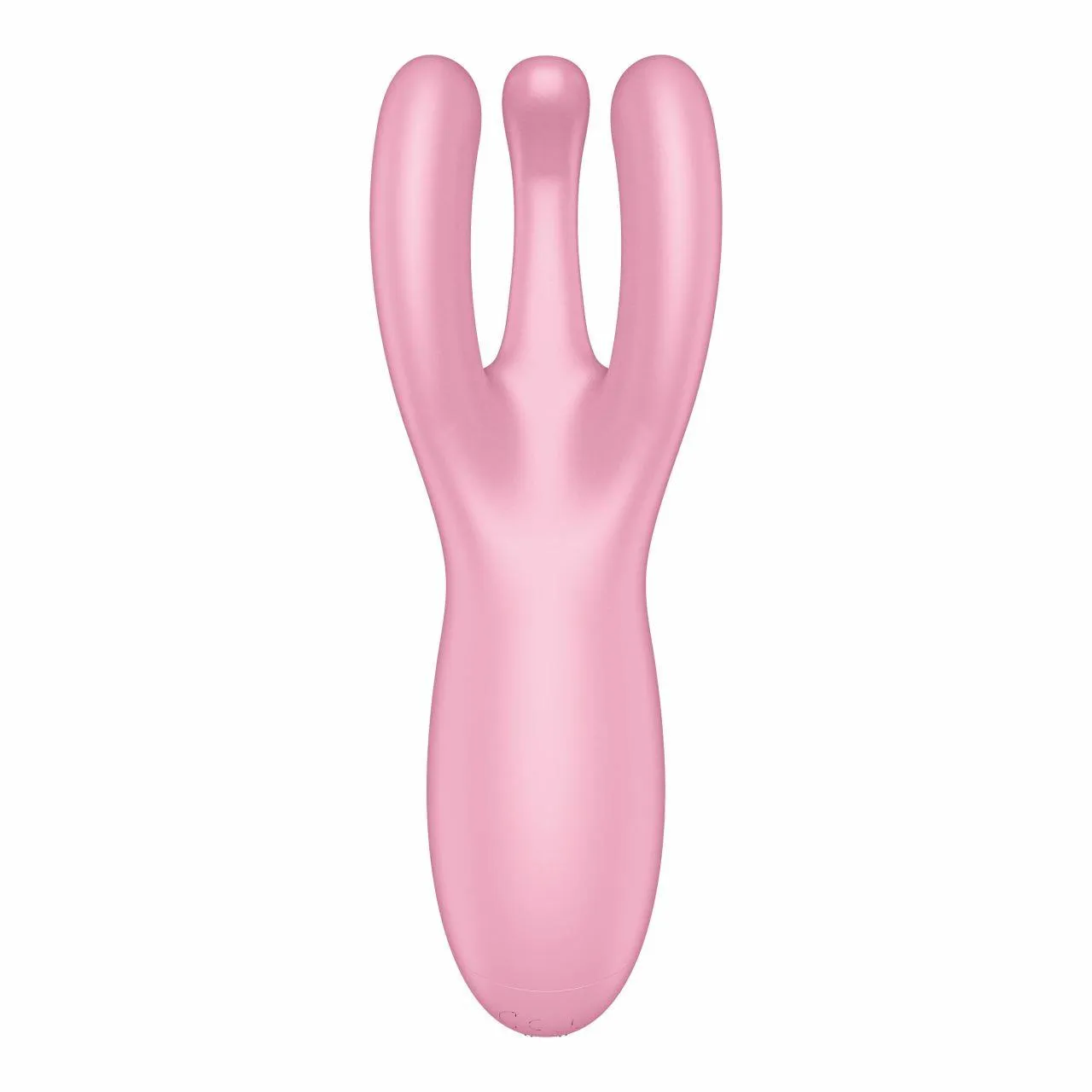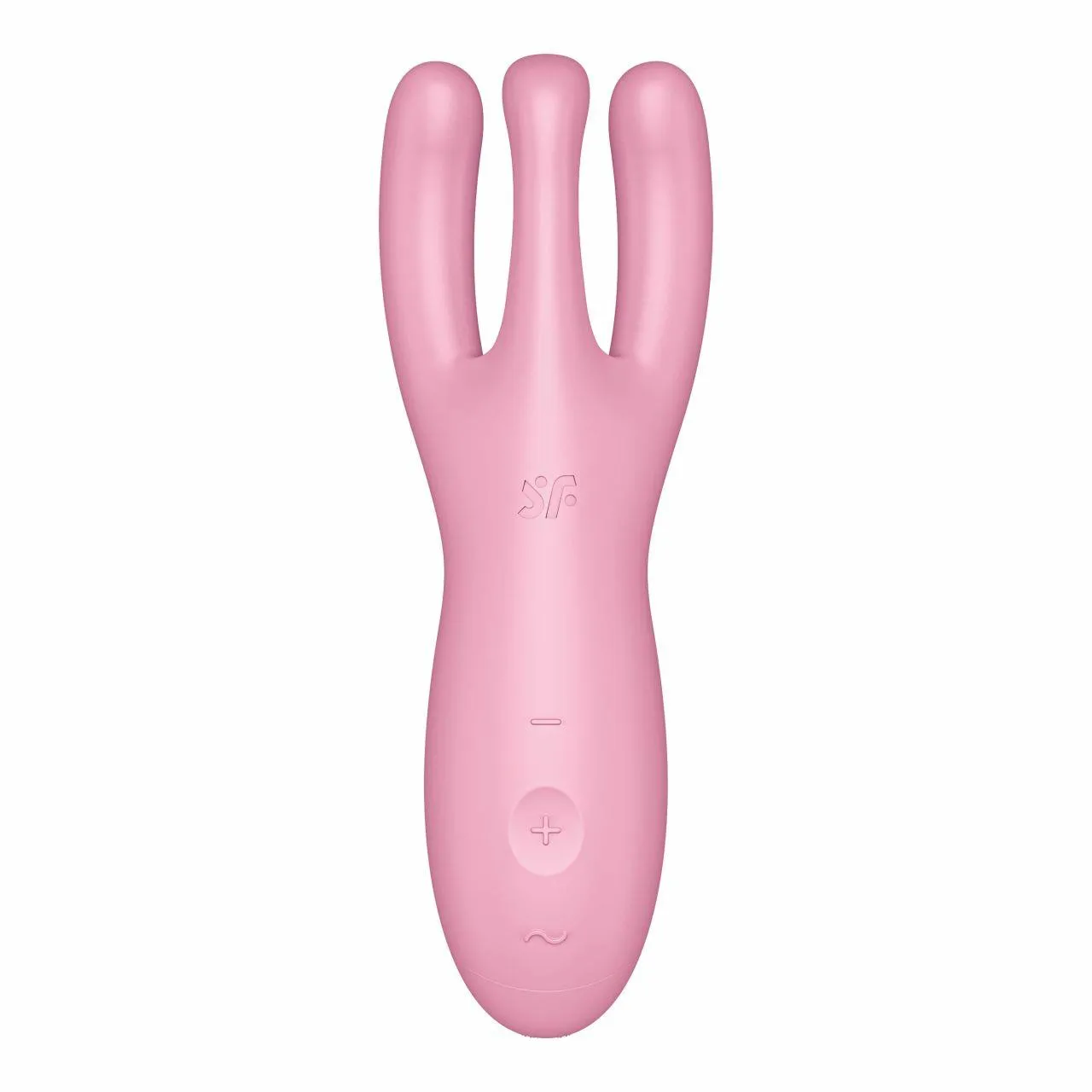 Wibrator lay-on Satisfyer Threesome 4 to doskonałe połączenie nowoczesnej technologii oraz eleganckiego designu, dedykowane osobom pragnącym eksplorować swoje potrzeby w intymny sposób. Dzięki zastosowaniu medycznego silikonu o gładkiej powierzchni, produkt jest nie tylko przyjemny w dotyku, ale także higieniczny i bezpieczny dla skóry. Trzy silne silniczki odpowiadające za bezprecedensową moc wibracji, współdziałają ze sobą, oferując niezapomniane doznania w różnych partiach ciała, umożliwiając jednoczesną stymulację łechtaczki i warg sromowych.