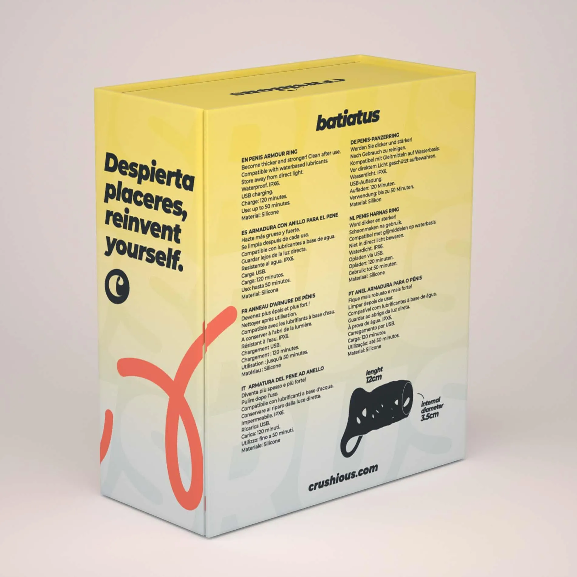Wibrator-nakładka Crushious Batiatus to funkcjonalne akcesorium intymne wykonane z wysokiej jakości silikonu, zaprojektowane z myślą o zwiększeniu doznań podczas współżycia oraz treningu wytrzymałości. Produkt posiada długość całkowitą 12 cm oraz wewnętrzną średnicę 3,5 cm, co zapewnia pewne i komfortowe dopasowanie do większości użytkowników. Gładka, elastyczna struktura materiału przylega do ciała niczym druga skóra, jednocześnie zachowując trwałość i łatwość utrzymania w czystości.