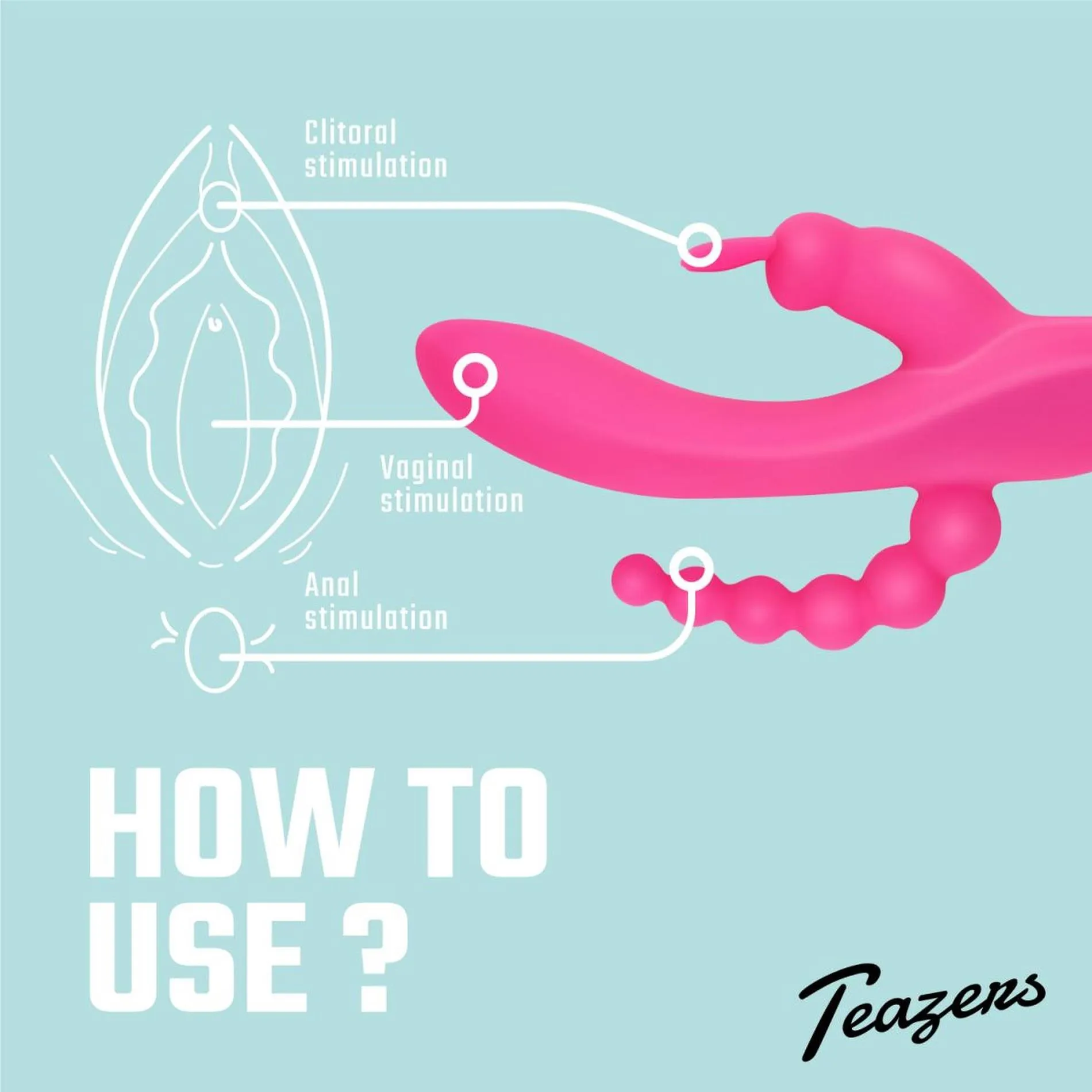 Wibrator podwójny króliczek to idealne rozwiązanie dla osób, które pragną doświadczyć intensywnej przyjemności dzięki kompleksowej stymulacji. Jego unikatowa konstrukcja umożliwia jednoczesne pobudzanie łechtaczki, krocza, oraz punkcie G, a także intensywną stymulację analną. Dzięki 10 potężnym trybom wibracji, łatwo dostosujesz go do swojego nastroju i potrzeb. Wibrator wyposażony jest w 3 różne ustawienia wibracji oraz 7 prędkości, co zapewnia różnorodność doznań i pełną kontrolę nad intensywnością przyjemności.