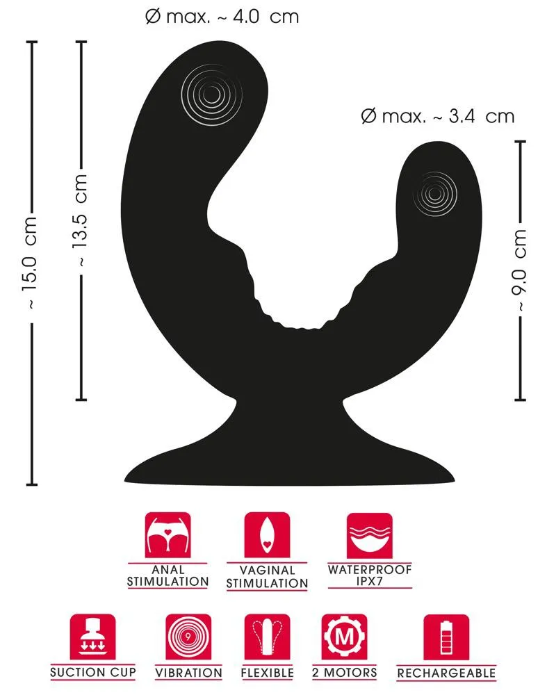 Wibrator jest w pełni wodoodporny, co czyni go idealnym towarzyszem zarówno do zabawy w wannie, jak i pod prysznicem. Jego dynamika sprawia, że idealnie nadaje się do symultanicznej stymulacji waginalnej i analnej. Dodatkowo, dzięki mocnej przyssawce, wibrator można zamocować na gładkich powierzchniach, co umożliwia zabawę bez użycia rąk i daje zupełnie nowe możliwości eksploracji. Elastyczny materiał wykonania sprawia, że wibrator doskonale dopasowuje się do ciała, co podnosi komfort użytkowania.