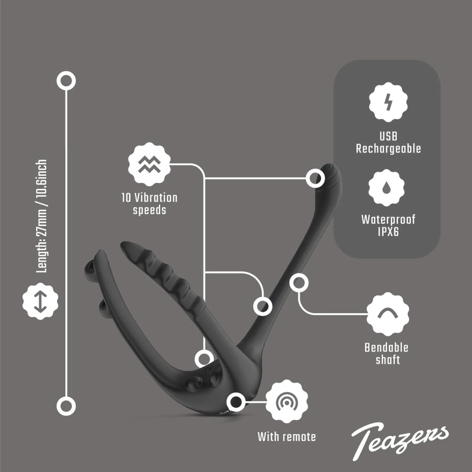 Odkryj nowy wymiar przyjemności dzięki wibratorowi prostaty Teazers Triple. Ten wyjątkowy gadżet został zaprojektowany z myślą o maksymalnym komforcie oraz intensyfikacji doznań. Dzięki regulowanemu pierścieniowi na penisa, masz możliwość idealnego dopasowania, co gwarantuje nie tylko wygodę, ale również intensywne przeżycia. Pozwól sobie na zasmakowanie w pełni stymulacji poprzez delikatne wibracje i niezrównane doznania.