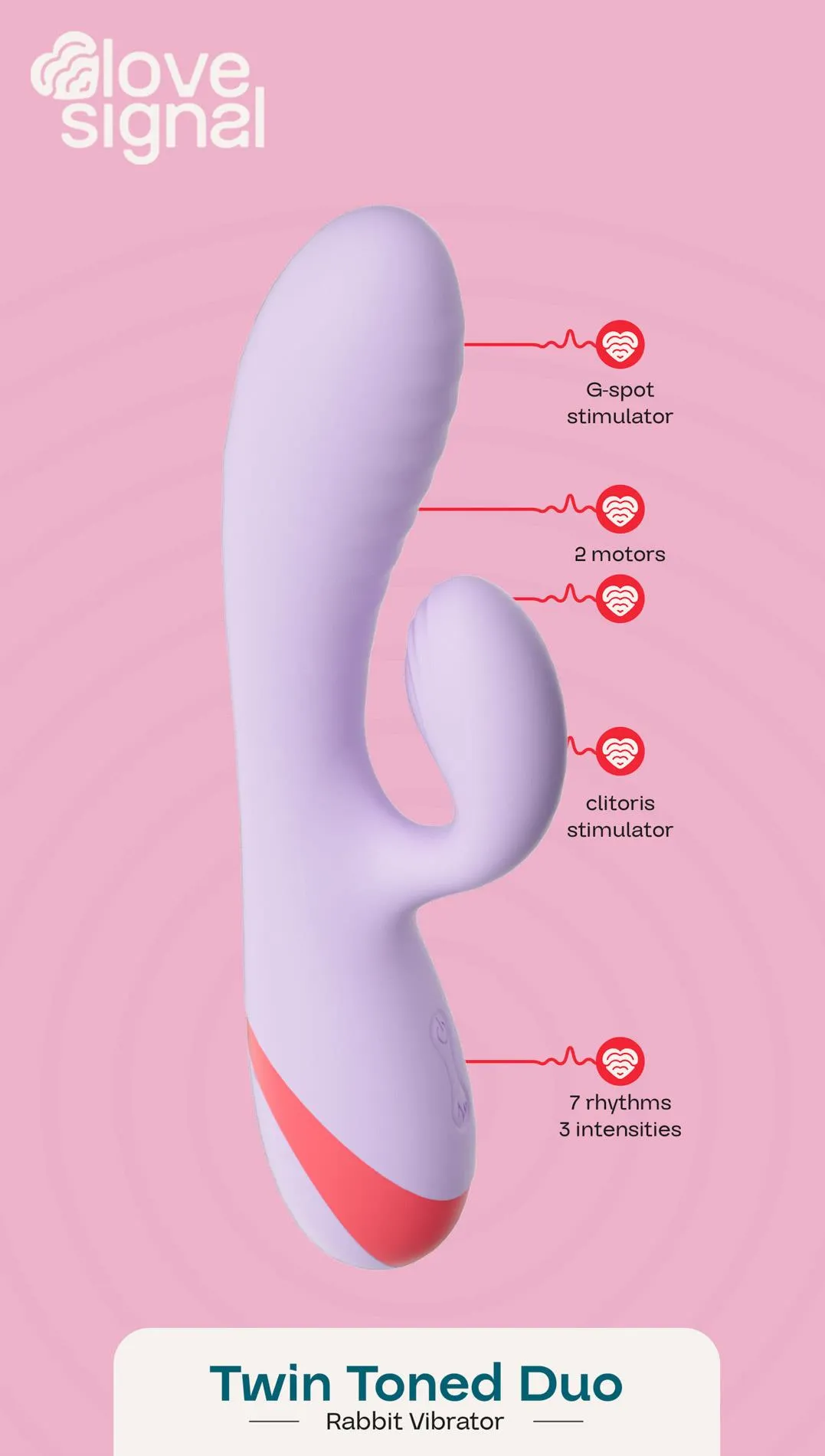 Wibrator Rabbit Dreamtoys Love Signal — 2 silniki, 3 poziomy, 7 programów to precyzyjnie zaprojektowane urządzenie do jednoczesnej stymulacji wewnętrznej i zewnętrznej. Wyposażony w dwa niezależne silniki, zapewnia intensywne, skoordynowane doznania, a zaawansowane tryby pracy pozwalają dopasować rytm i siłę wibracji do indywidualnych potrzeb. Produkt wykonano z bezpiecznego dla ciała silikonu oraz elementów ABS, co gwarantuje jednocześnie miękkość powierzchni i trwałość konstrukcji.