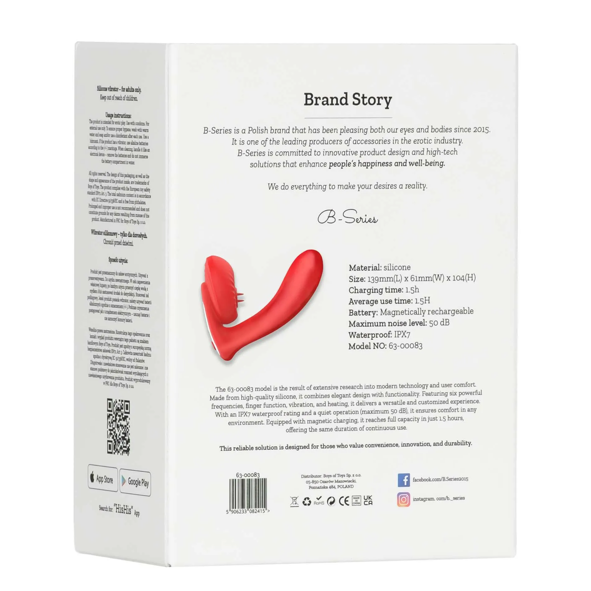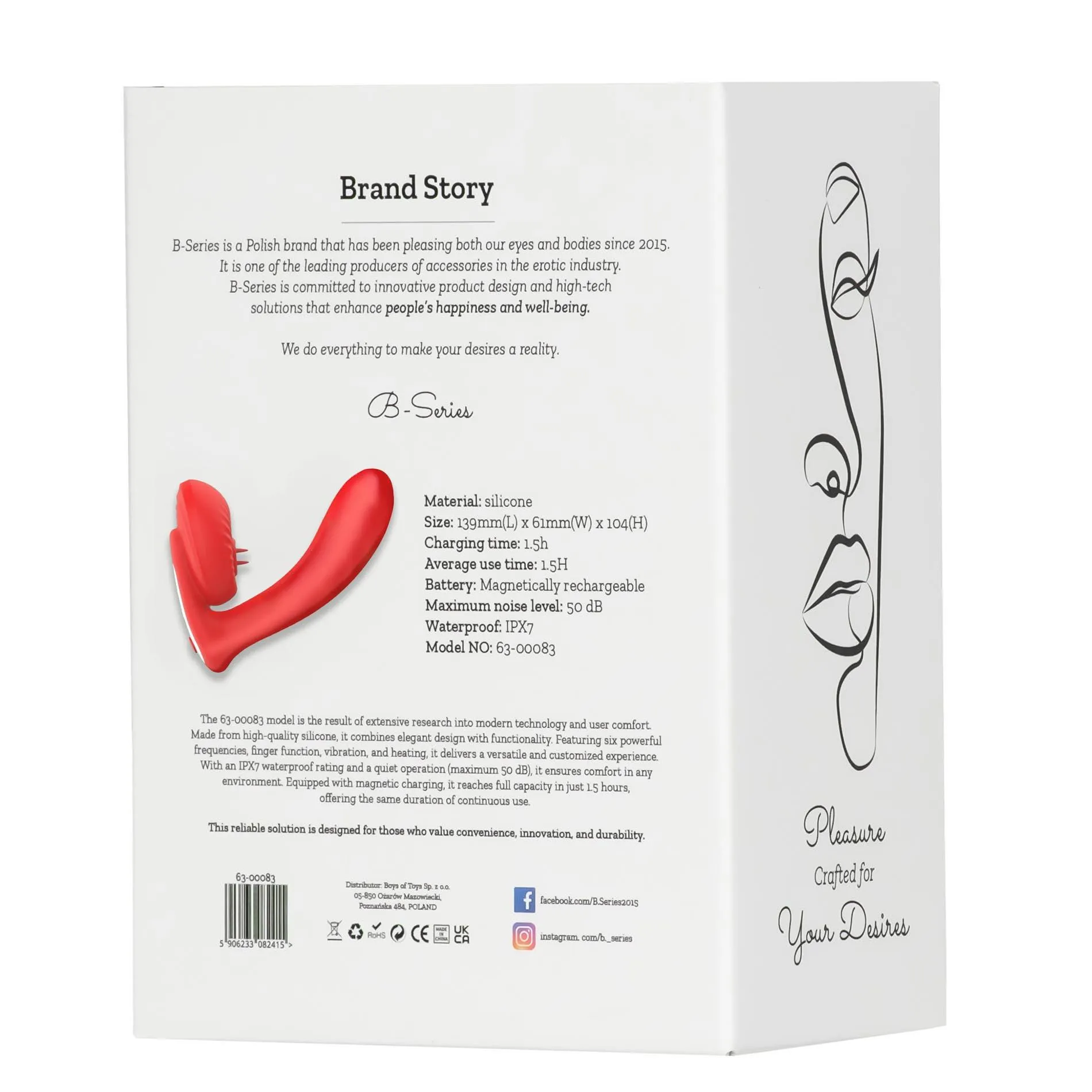 Wibrator wyróżnia się wodoodpornością (IPX7), co umożliwia jego używanie pod prysznicem lub w wannie, a także ułatwia czyszczenie po użyciu. Cichy silnik generuje hałas poniżej 50 dB, co sprawia, że możesz korzystać z niego w dyskrecji. Dodatkowo, magnetyczne ładowanie zapewnia szybkie i bezpieczne uzupełnianie energii. Ergonomiczne wymiary 139 (L) × 61 (W) × 104 (H) mm sprawiają, że wibrator jest łatwy w trzymaniu oraz wygodny w użytkowaniu. To idealny wybór dla osób pragnących odkrywać nowe doznania i cieszyć się z nowoczesnych funkcji w kompaktowej formie.
