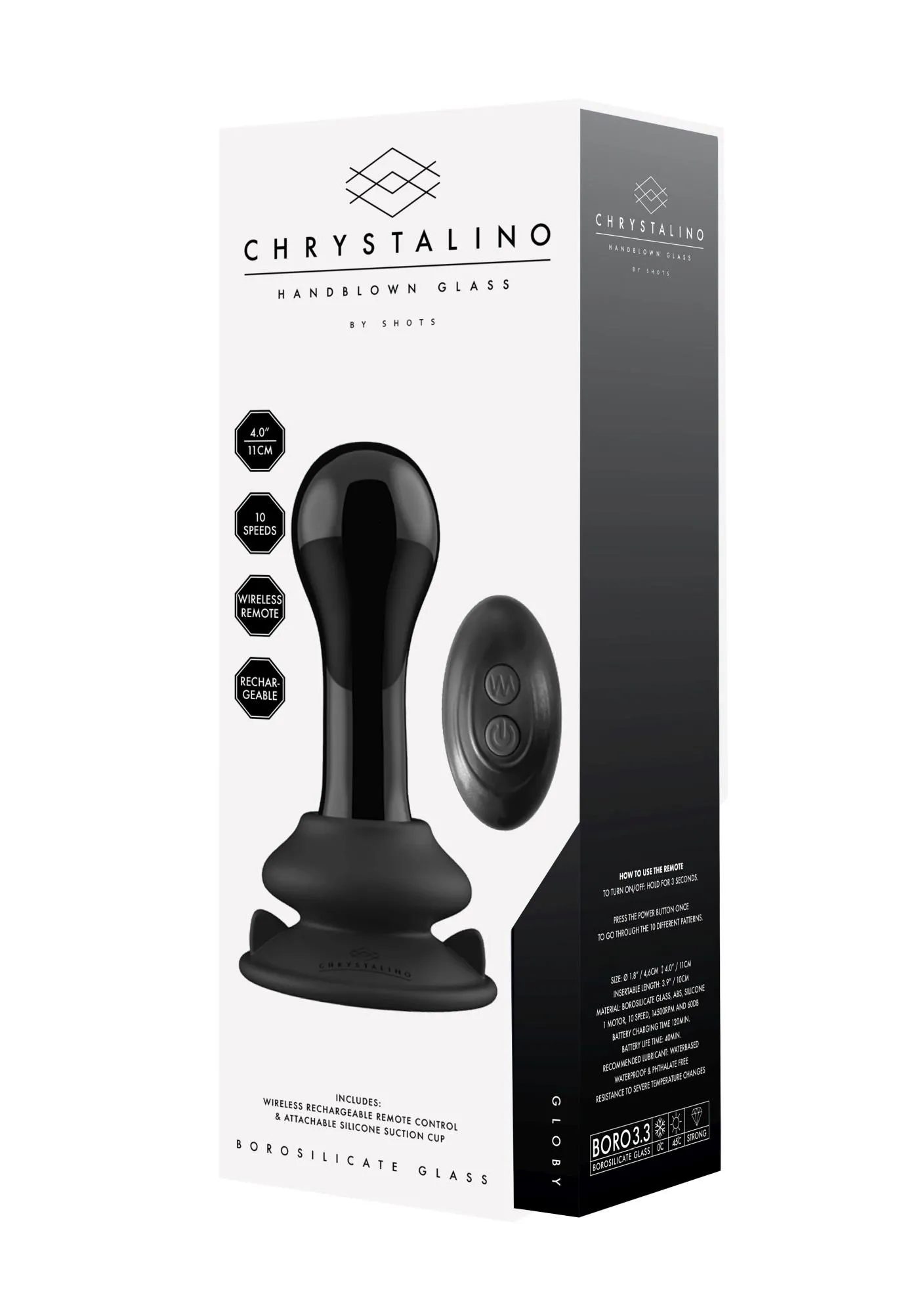 Wibrator Chrystalino jest wyposażony w demontowalną podstawę z przyssawką, która umożliwia solidne mocowanie do dowolnej płaskiej powierzchni. Dzięki temu, możesz odkrywać nowe możliwości zabawy, czy to w pojedynkę, czy z partnerem. Dodatkowo, jego możliwości zabaw z temperaturą pozwalają na ogrzewanie wibrator w ciepłej wodzie lub schładzanie go w lodówce, co jeszcze bardziej intensyfikuje doznania. W zestawie znajdziesz również bezprzewodowy pilot, który pozwala na łatwe zarządzanie prędkościami wibracji, co umożliwia pełną kontrolę bez zbędnych przeszkód.