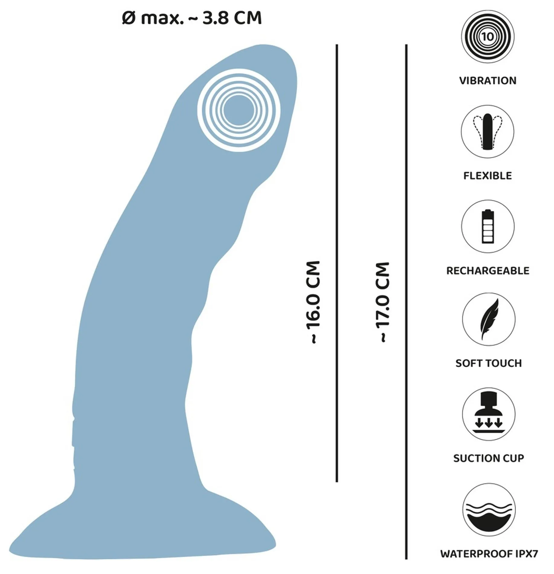 Dzięki mocnej przyssawce w kształcie serca, Heart Guy Blue pewnie przylega do gładkich powierzchni. Umożliwia to całkowitą swobodę w zabawie, zaś wodoodporna konstrukcja sprawia, że jest idealnym towarzyszem zarówno pod prysznicem, jak i w wannie. Wykonany z jedwabiście miękkiego, płynnego silikonu, ten produkt nie tylko doskonale wygląda, ale także zapewnia przyjemny w dotyku komfort i łatwość w użyciu.
