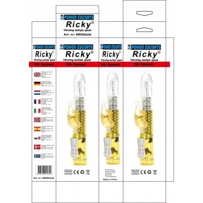 Stymulator łechtaczkowy Ricky Gold z 36 prędkościami i ergonomiczną budową 23,5 cm