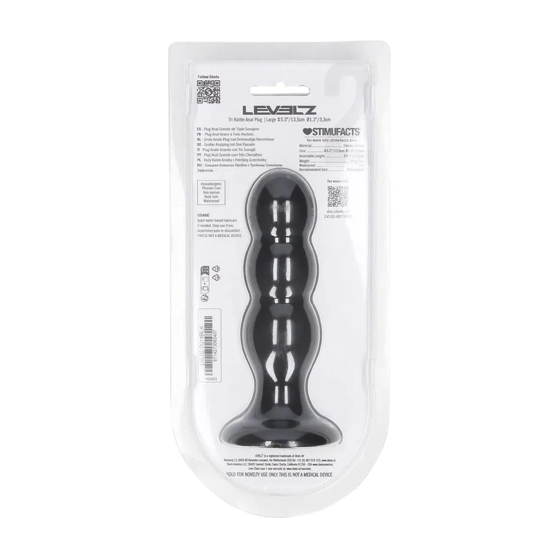 Elastyczna szyjka korka analnego Levelz naturalnie porusza się w odpowiedzi na ruchy ciała, co znacznie potęguje doznania oparte na dynamice. Bezpieczna, rozszerzona podstawa gwarantuje komfort i pewność noszenia, pozwalając na pełne oddanie się chwilom przyjemności. Produkt jest oferowany w eleganckim opakowaniu typu clamshell, które z pewnością przyciągnie wzrok na półce, podkreślając luksusowy charakter Twojego wyboru.