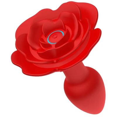 Korek analny – Rozkwitająca Róża, silikon, 10 wibracji, wodoodporny