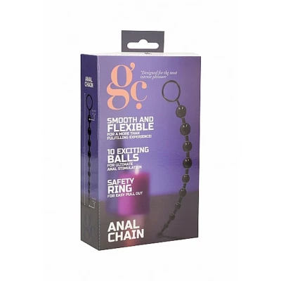 Łańcuszek analny z 10 kulkami o różnych średnicach, czarny, TPE, głębokość 25.5 cm