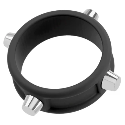 Pierścień na penisa Rebel z ćwiekami, czarny, silikonowy, elastyczny, średnica 3,5 cm
