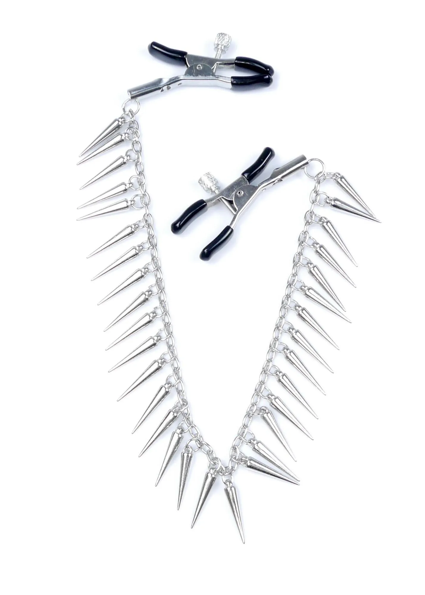 Wyróżniającą cechą tych zacisków jest możliwość regulacji siły nacisku, co pozwala na dostosowanie intensywności stymulacji do indywidualnych potrzeb. Dzięki obracającej się śrubie można łatwo ustawić odpowiedni poziom zacisku – wystarczy przycisnąć klamrę i dokonać regulacji. Dodatkowo, elegancki łańcuszek z ozdobami, który łączy oba sutki, potęguje doznania przy każdym ruchu.