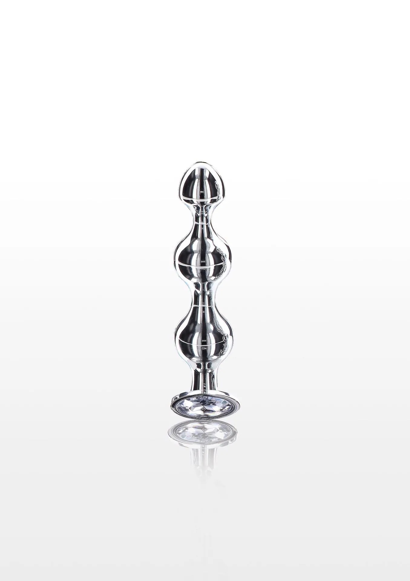 Unikalny design zatyczki analnej, z trzema koralikami o stopniowo zwiększającej się wielkości, zapewnia niezwykłe doznania podczas używania. Każdy z koralików został wykonany w sposób, który płynnie ułatwia aplikację, a dzięki rozszerzonej podstawie masz pewność, że zabawa będzie bezpieczna i komfortowa. Dodatkowo, elegancki srebrny klejnot na podstawie dodaje wyjątkowego stylu, sprawiając, że zatyczka nie tylko jest funkcjonalna, ale również przyciąga wzrok.