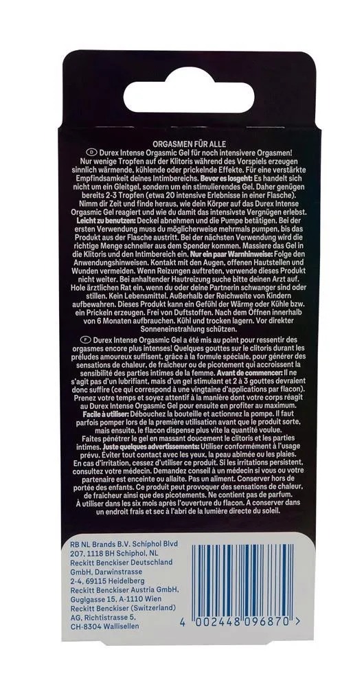 Oferujemy Żel stymulujący do orgazmu Durex Intense – 10 ml, preparat zaprojektowany, by zwiększać wrażliwość stref intymnych i potęgować doznania podczas stosunku. Produkt o pojemności 10 ml zapewnia do 20 zastosowań przy standardowej aplikacji. Formuła żelu daje wieloaspektowy efekt: rozgrzewający, chłodzący lub delikatne mrowienie, co pozwala dopasować przeżycia do indywidualnych preferencji partnerów.