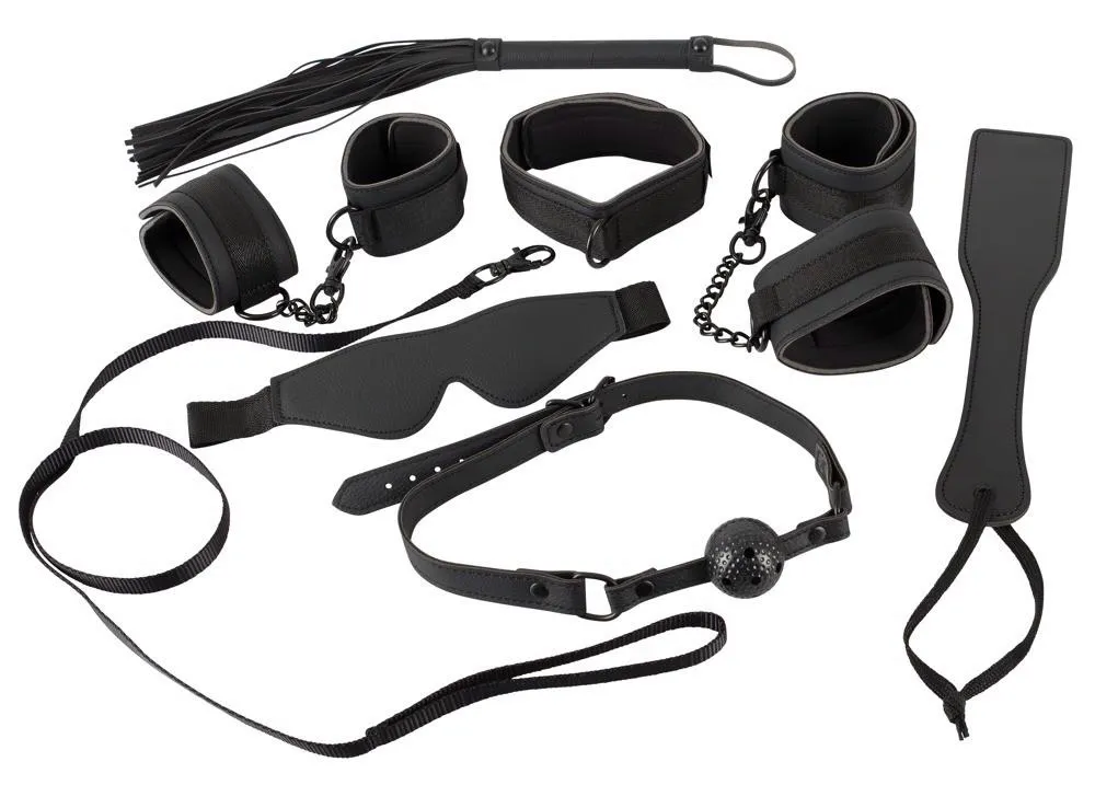 W skład zestawu wchodzą: obroża ze smyczą o długości 1 metra, maska na oczy, knebel ustny z wentylacją, pejcz o długości 38 cm, łopatka o długości 27 cm oraz kajdanki na ręce i nogi. Każdy z elementów jest regulowany, co pozwala na idealne dopasowanie do potrzeb użytkownika. Szczególna uwaga została poświęcona kneblowi, który jest nie tylko funkcjonalny, ale również komfortowy, dzięki otworom wentylacyjnym, które ułatwiają oddychanie.