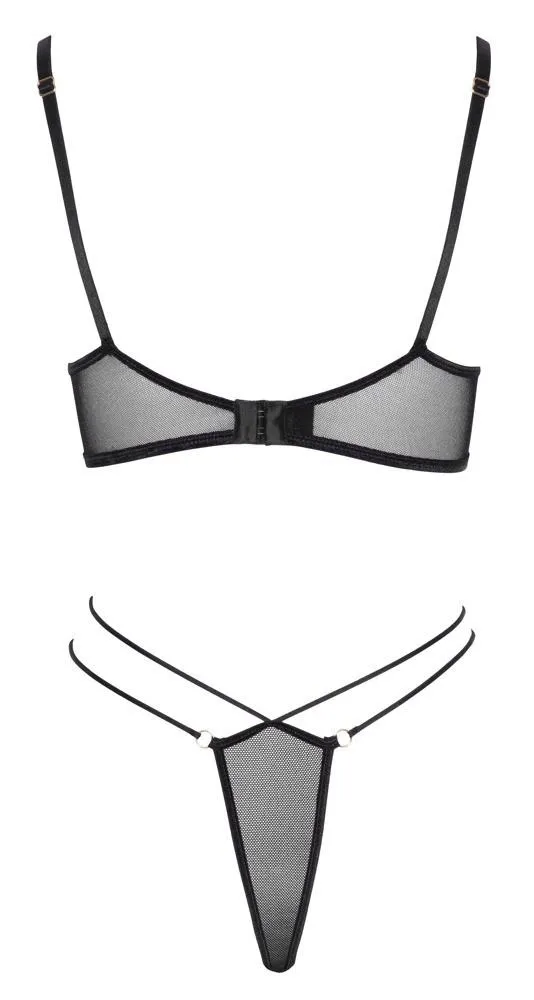 Elegancki i zmysłowy zestaw! Biustonosz i stringi Rio od renomowanej marki Cottelli LINGERIE to idealne połączenie komfortu i zmysłowości. Wykonane z elastycznego powernetu, te elementy bielizny są zdobione unikalnymi haftami, które dodają im wyjątkowego charakteru. Złote detale w postaci pierścieni wzbogacają wygląd, sprawiając, że zestaw staje się wyrazem elegancji i finezji.