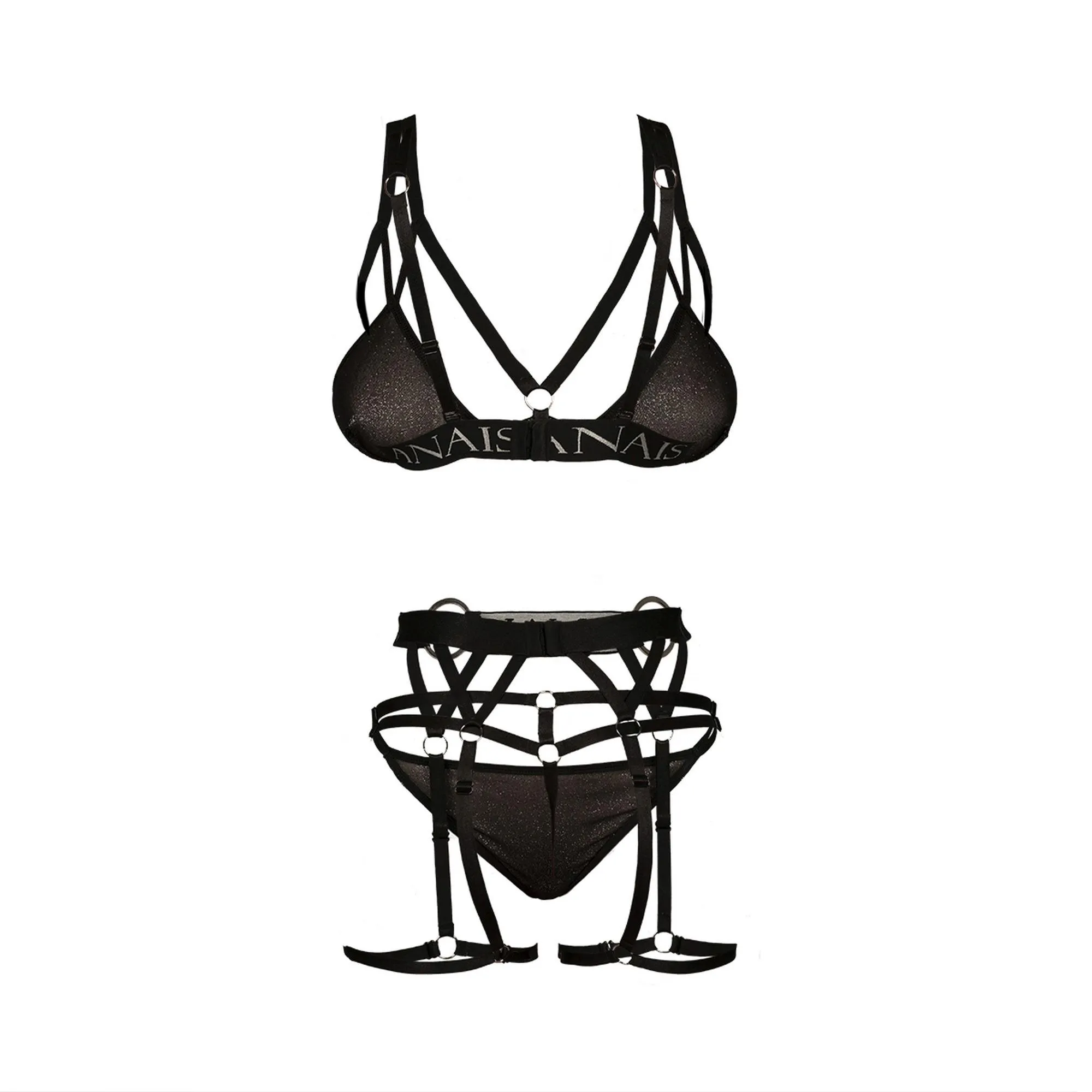 Każdy element zestawu zaprojektowano z myślą o komforcie noszenia. Biustonosz posiada regulowane ramiączka oraz zapięcia, co gwarantuje idealne dopasowanie do sylwetki. Ponadto, zestaw jest wzbogacony o ozdobne paseczki oraz metalowe regulatory, które nadają mu niepowtarzalny charakter. Wykonany z delikatnego brokatowego materiału, zestaw z pewnością doda blasku i pewności siebie w każdej sytuacji.